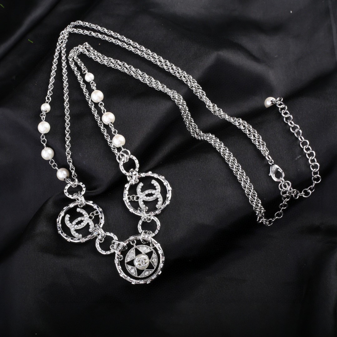 CCW129 Metal and pearls three layers chain with crystal cc logo waist belt