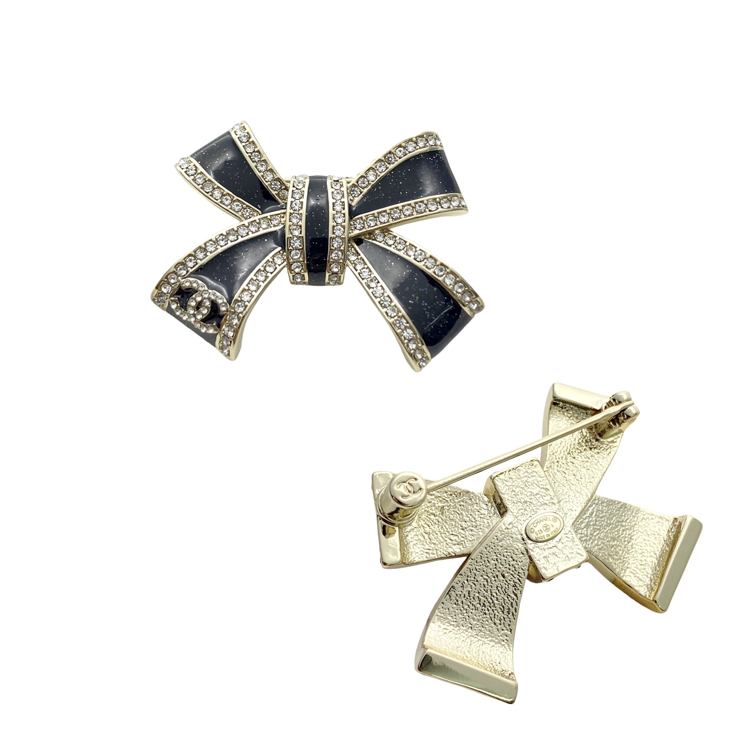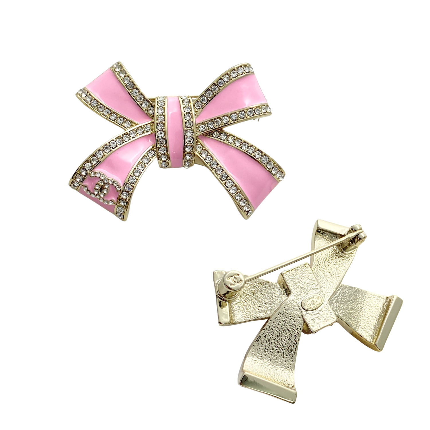 BCB589 Chanel Black-Gold & Pink Bow brooch pin