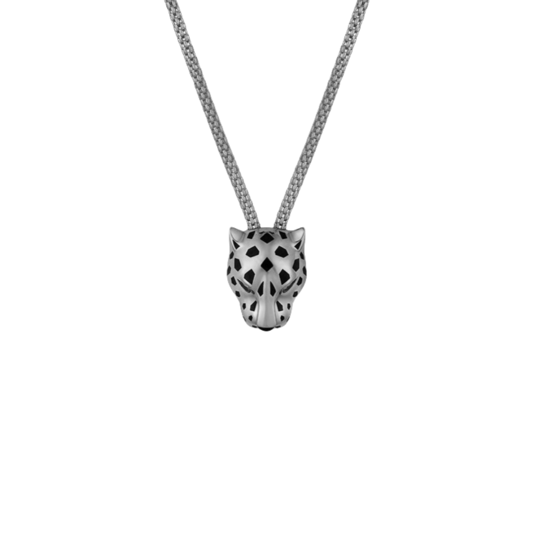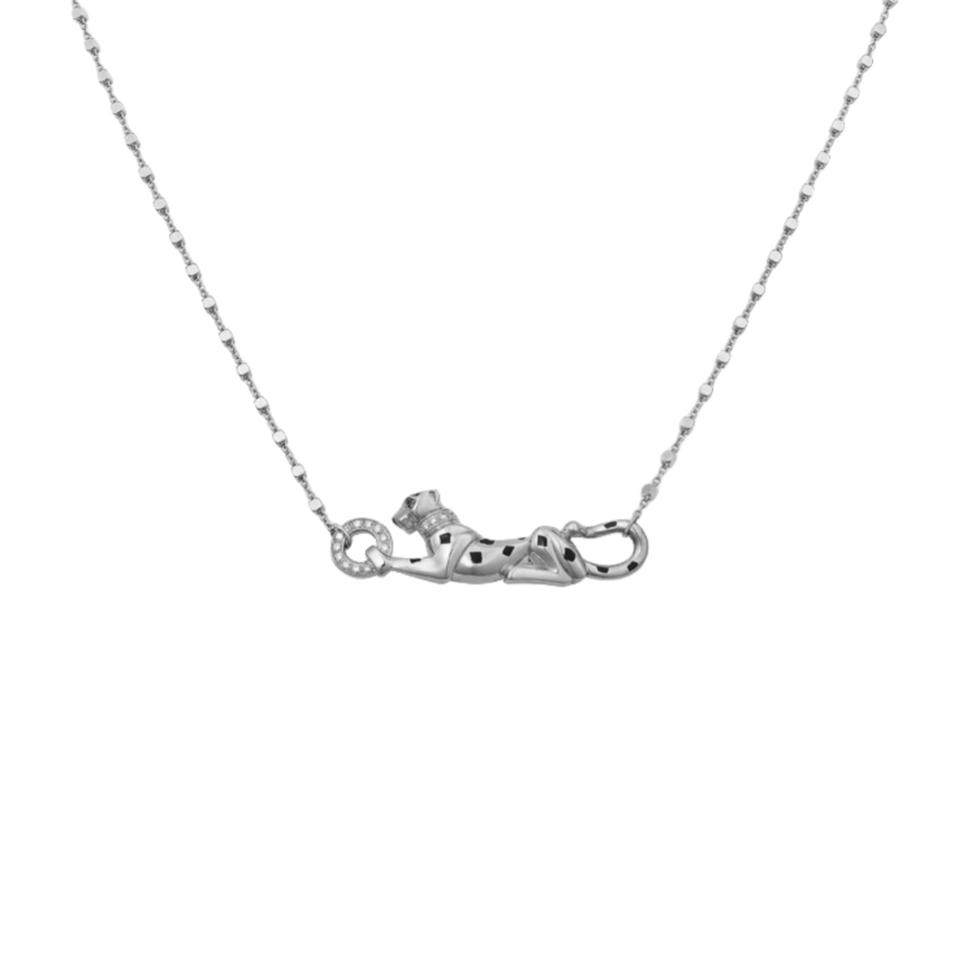 CTNV032 18K White Gold Diamond Onyx Emerald Panthere De Cartier Pendant Necklace