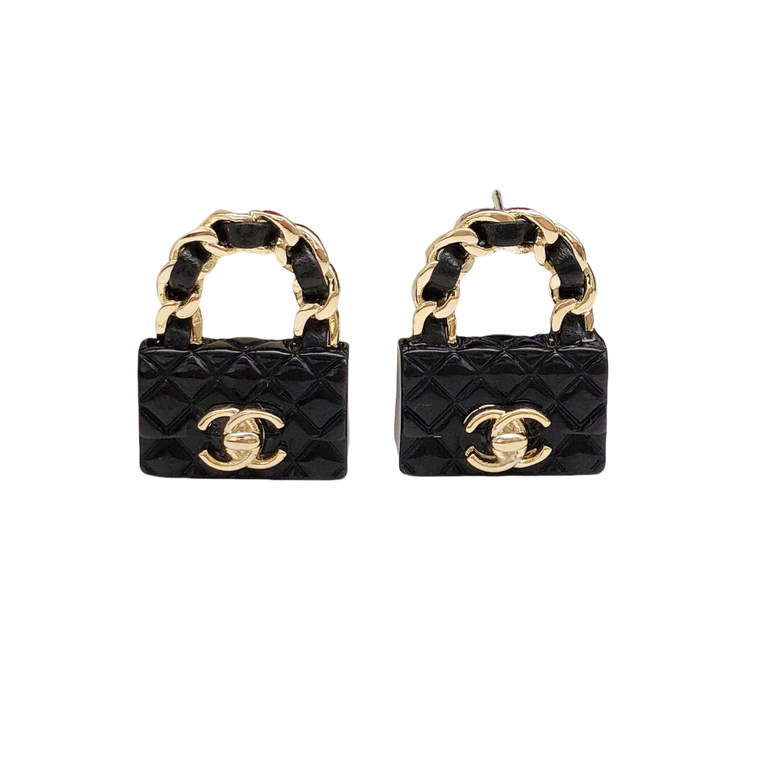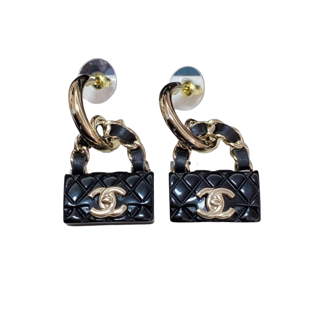 CCE840 Black cf bag hook earrings