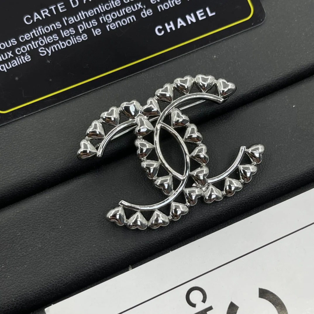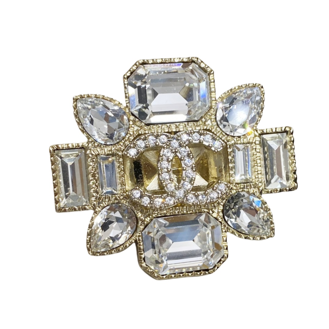 BCB157 Drop diamond and rectangular diamond flower with CC logo Brooch pin