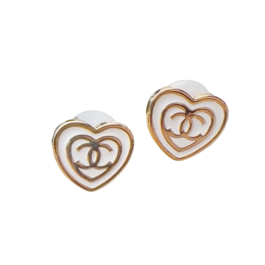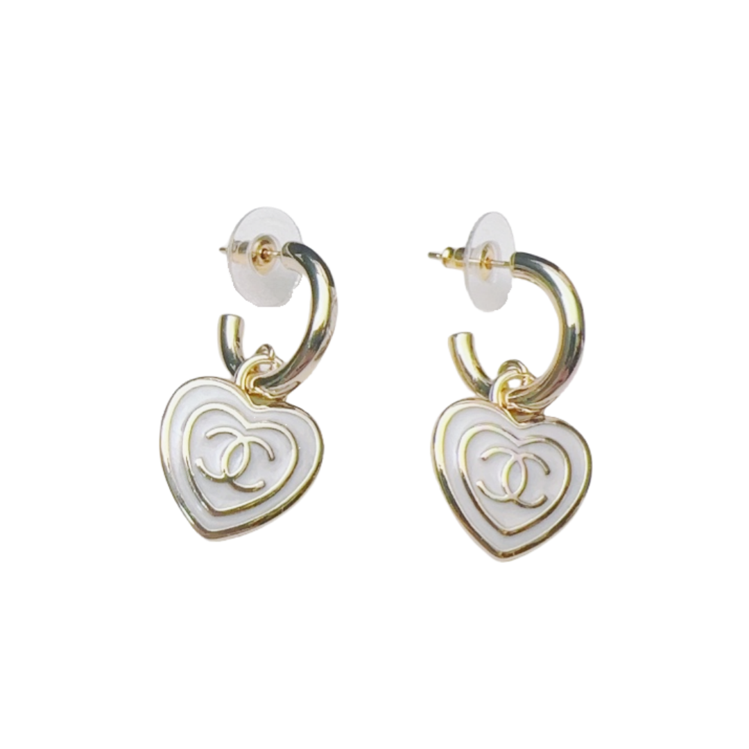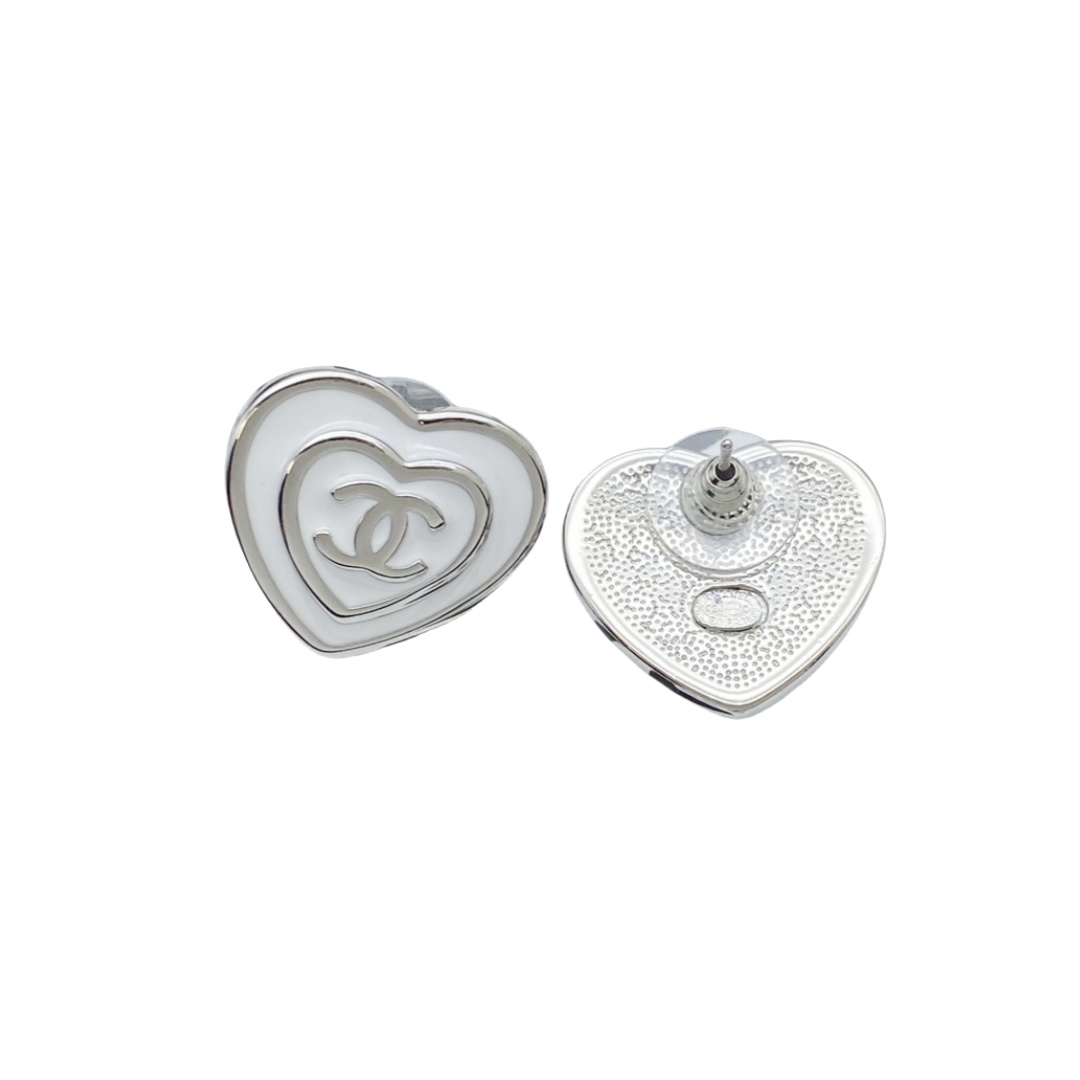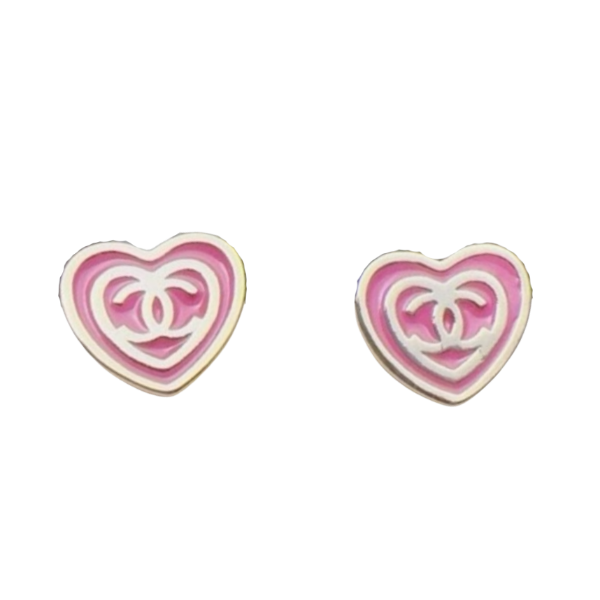 CCE633C 24p Pink Crystal Heart shaped with cc logo Stud Earring For Women