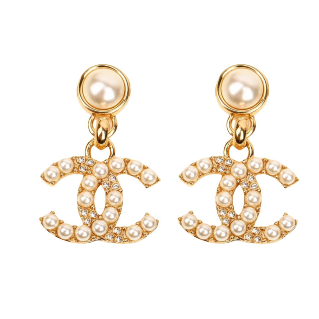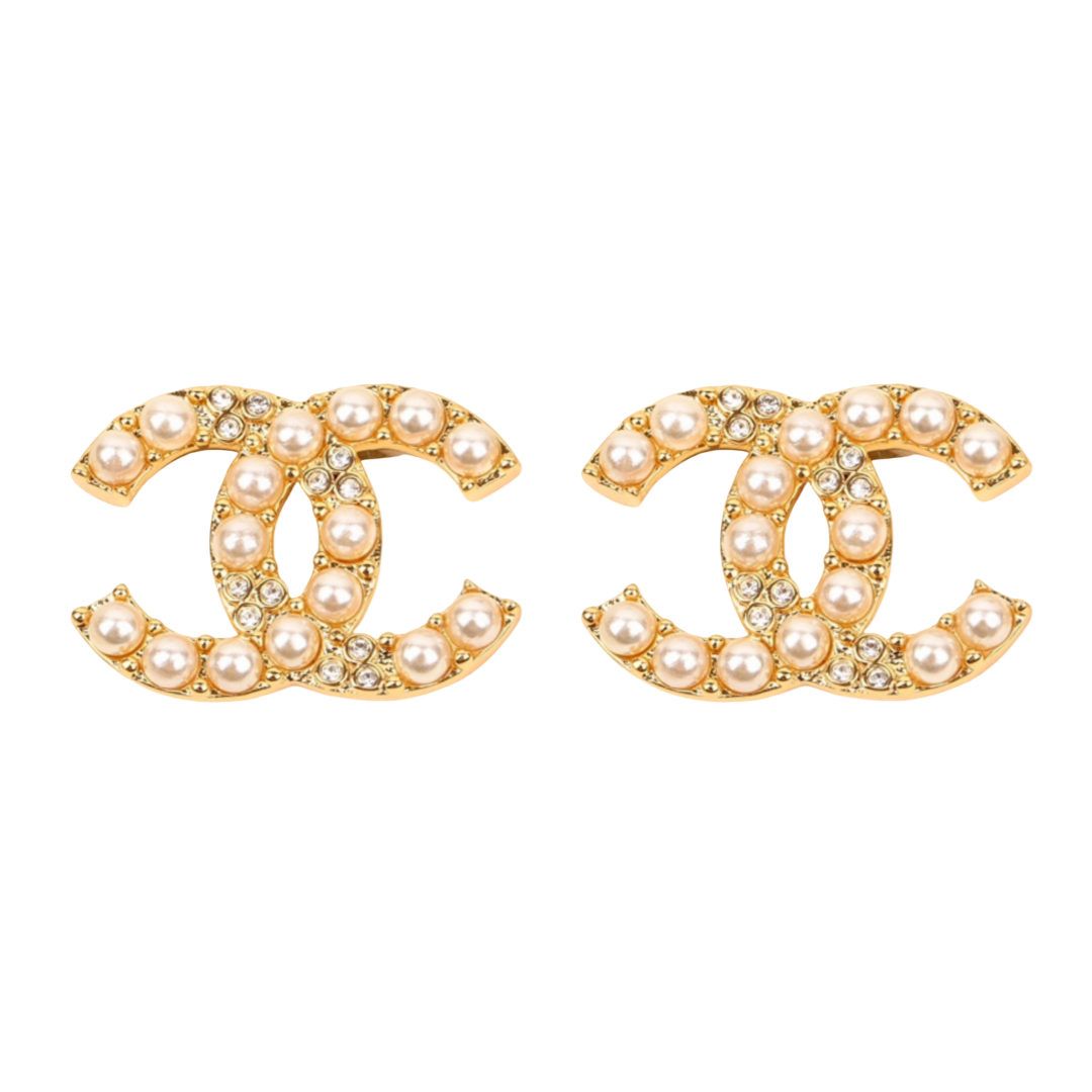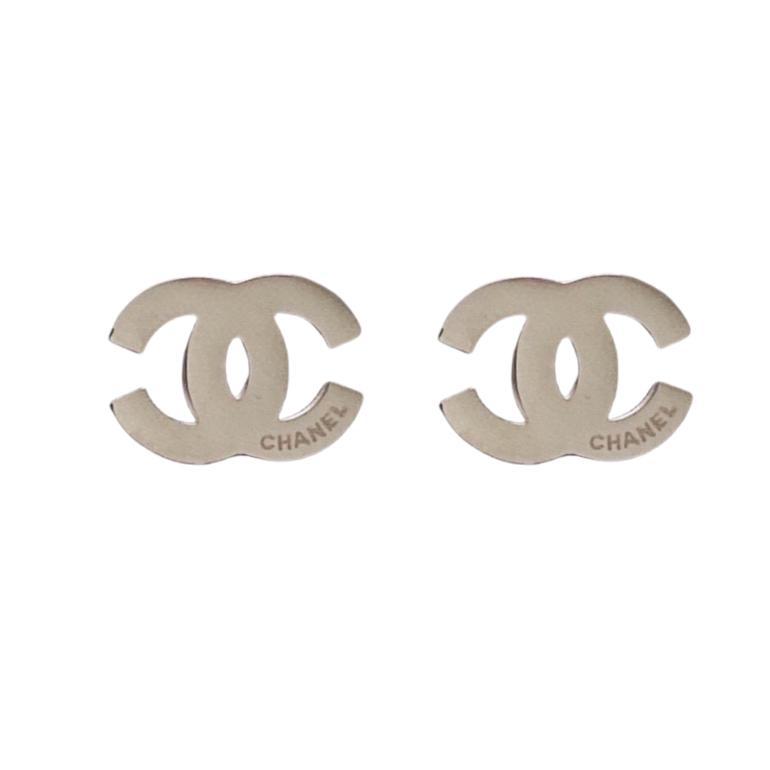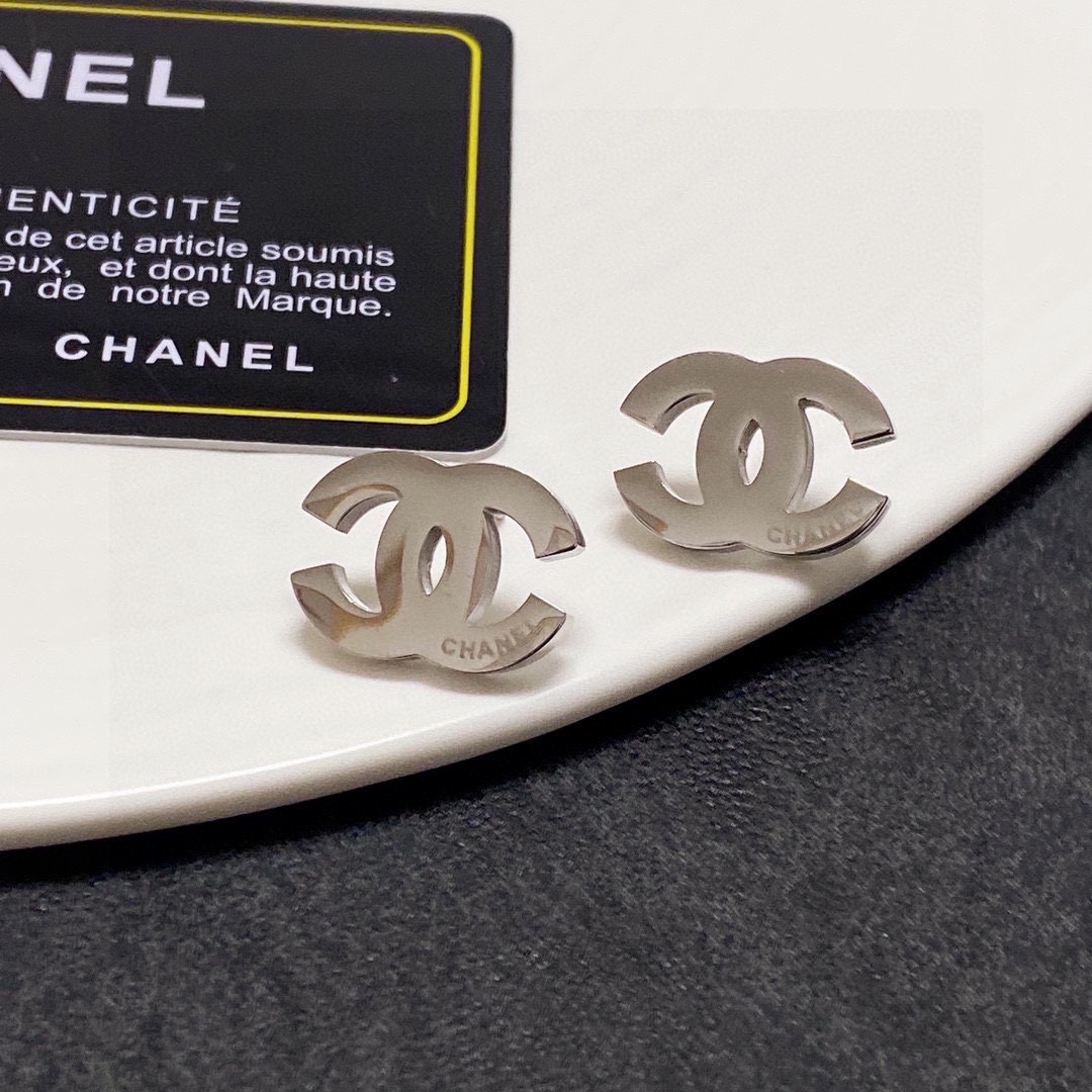 CCE347 Chanel Vintage Metal Square Black Leather-Like Minimalist Earrings