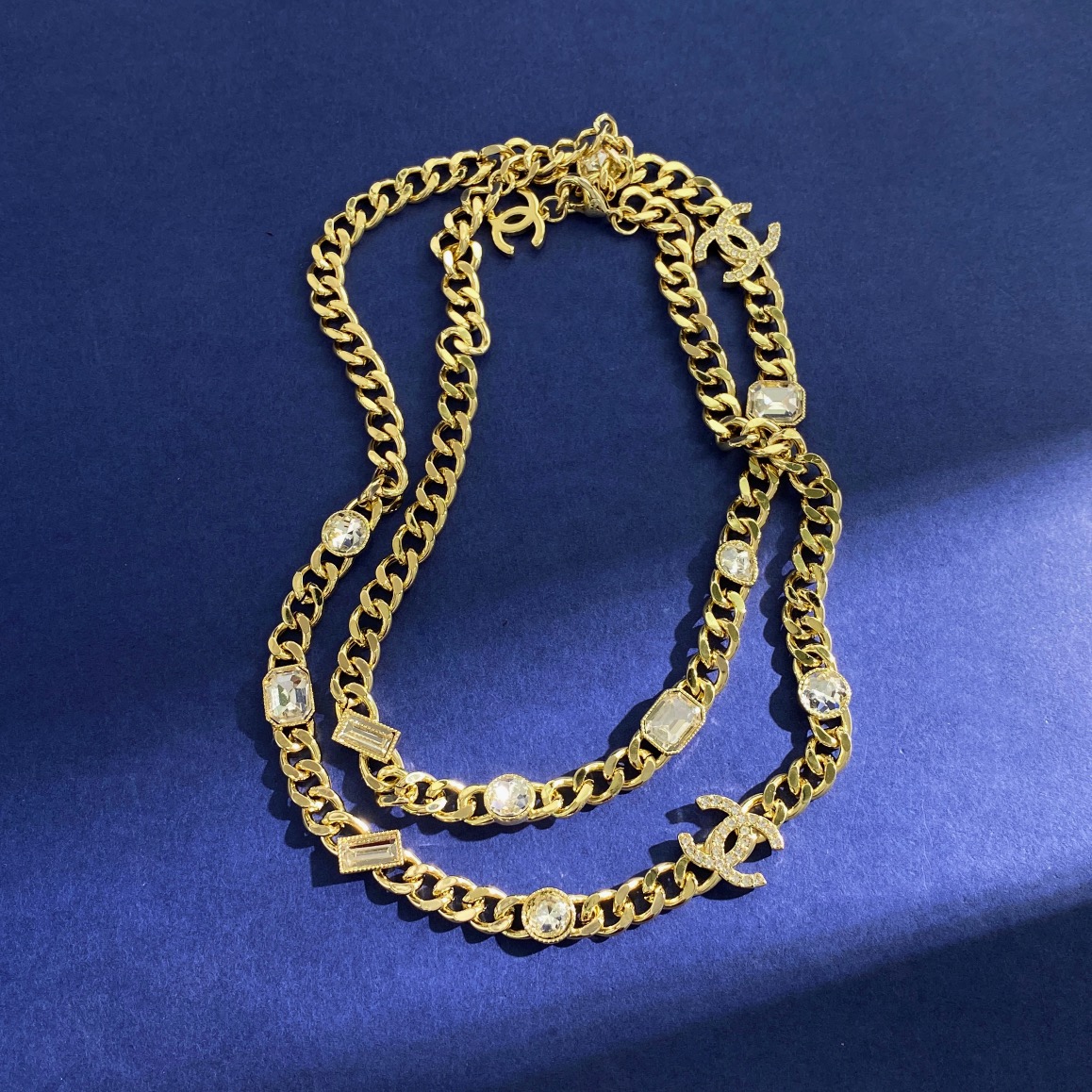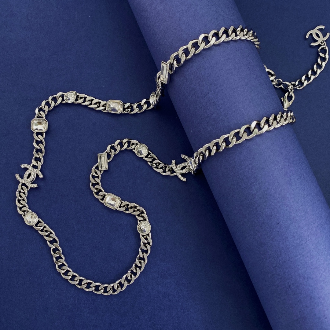 CCL053 CC Rectangle Drop Round crystal diamond sweater necklace long chain