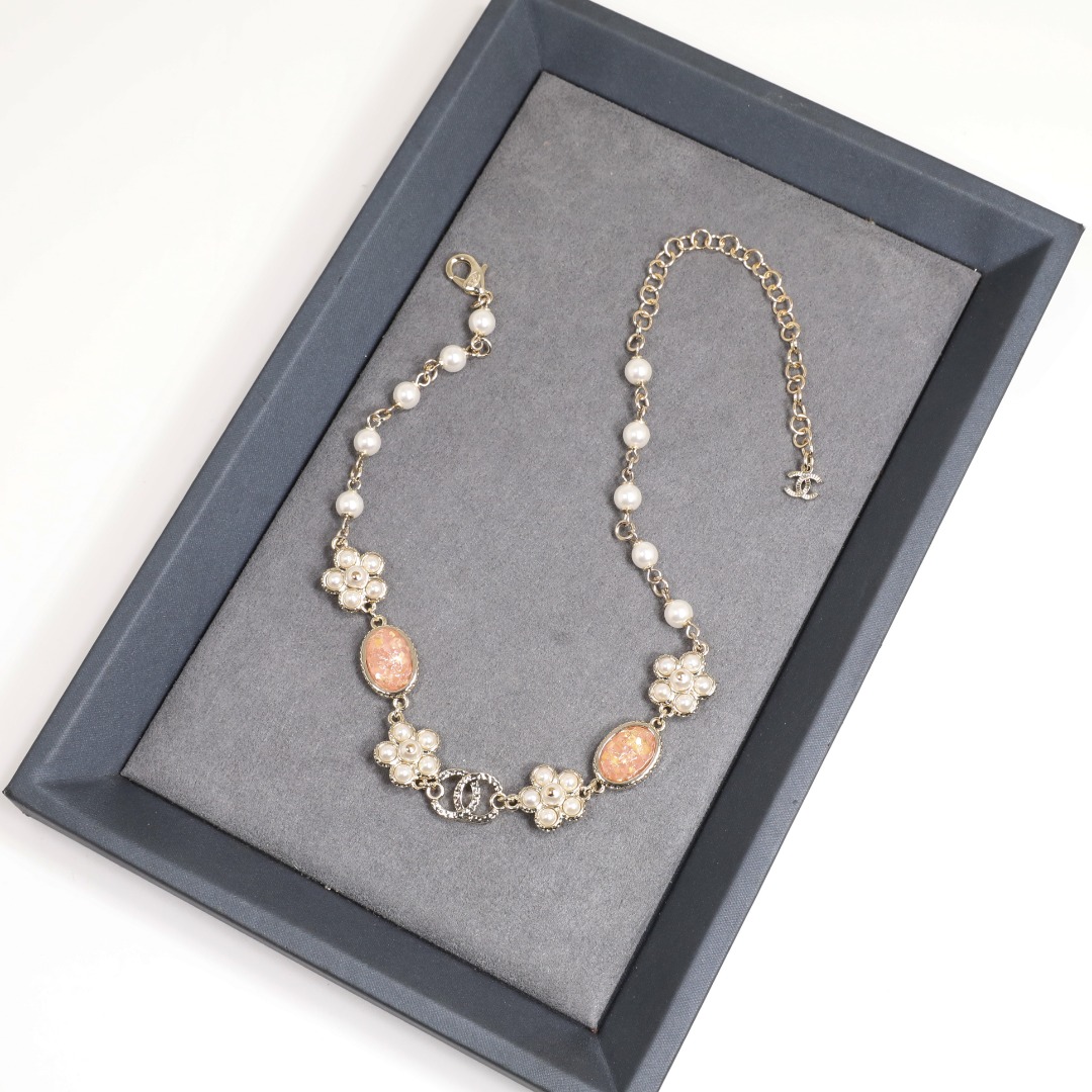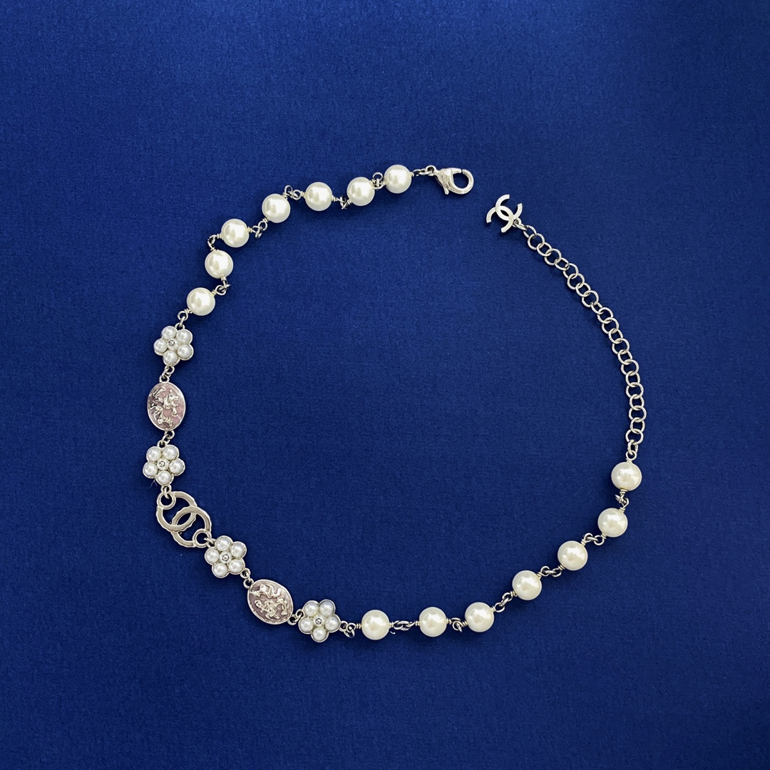 CCN411 Coco Mademoiselle Figurine Pendant Gold/Silver Tone Necklace Faux Pearl
