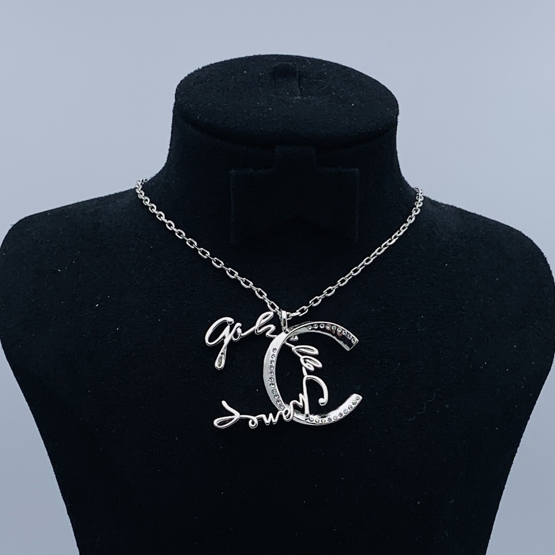 CCL332B Double Layer black enamel disc embossed double C necklace sweater necklace long chain