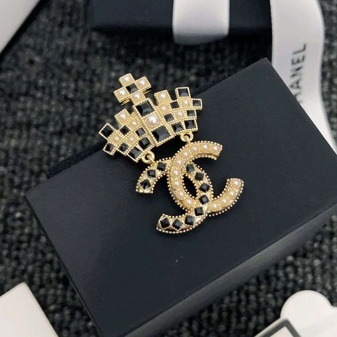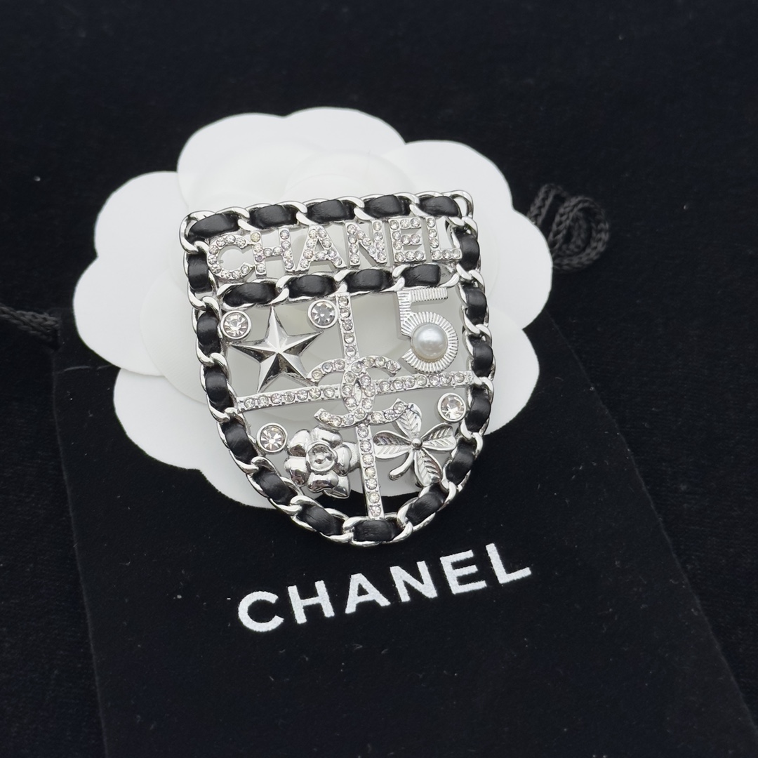 BCB007 Metal leather No 5 star clover camellia flower crystal Shield Brooch