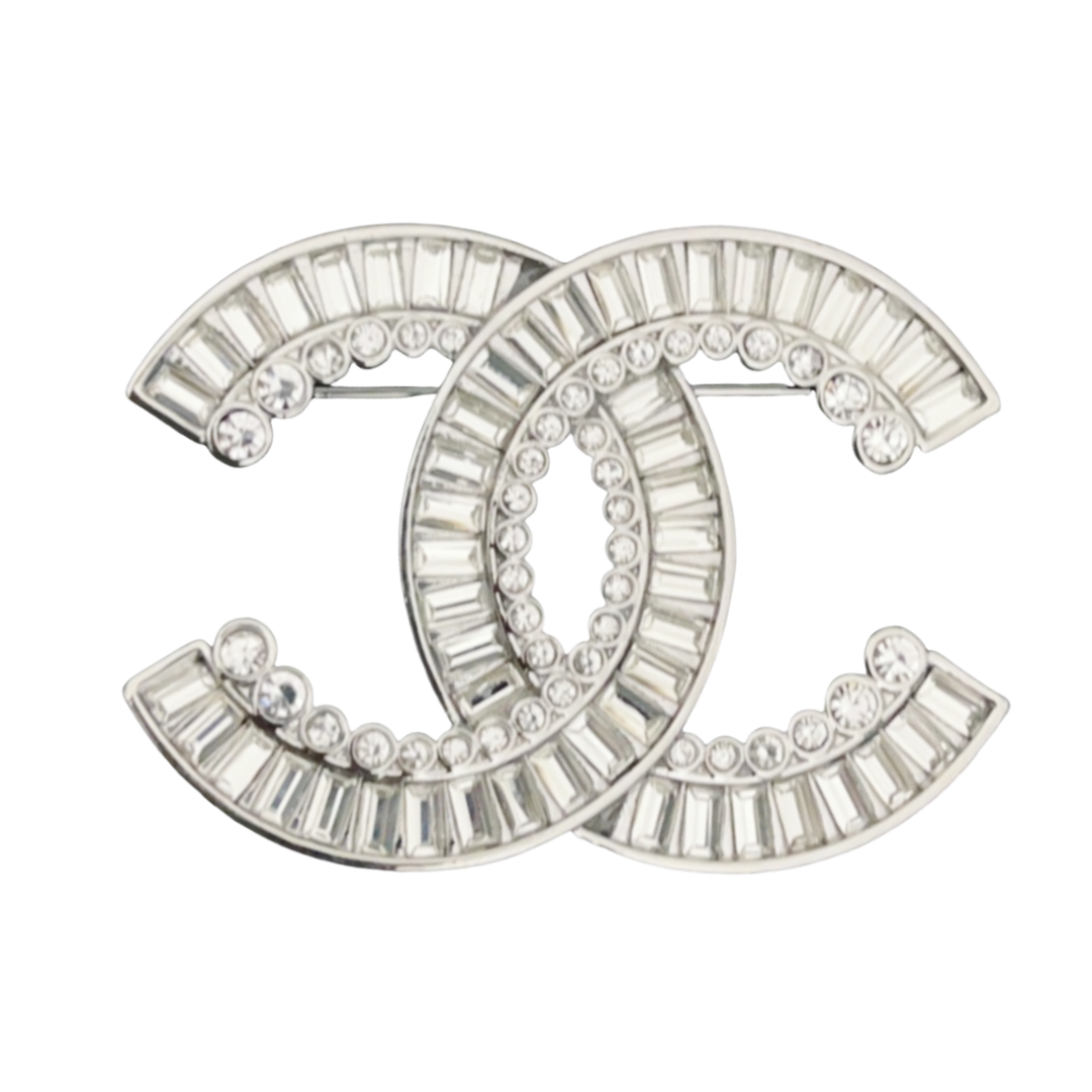 BCB050 Double C interlocking enamel black star and crystal brooch pin