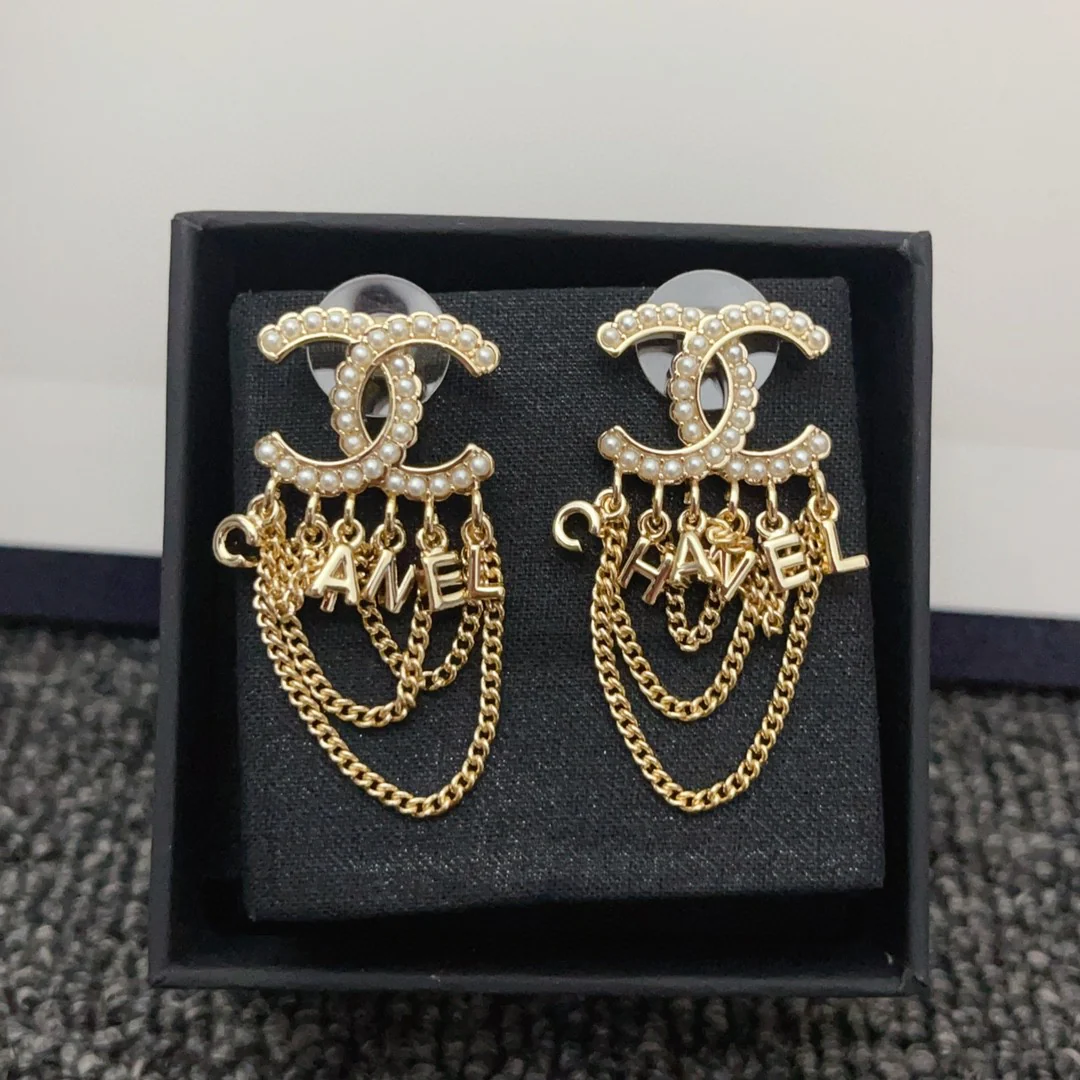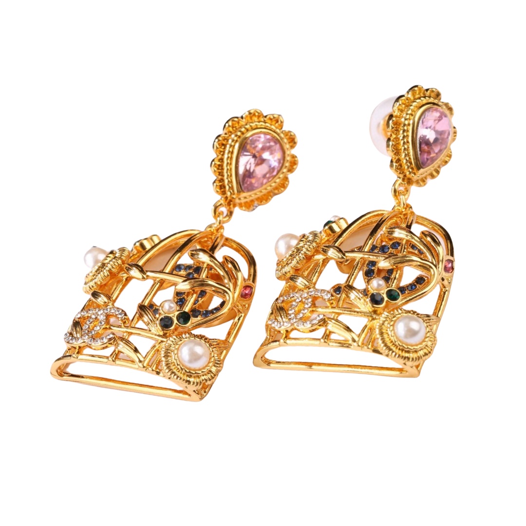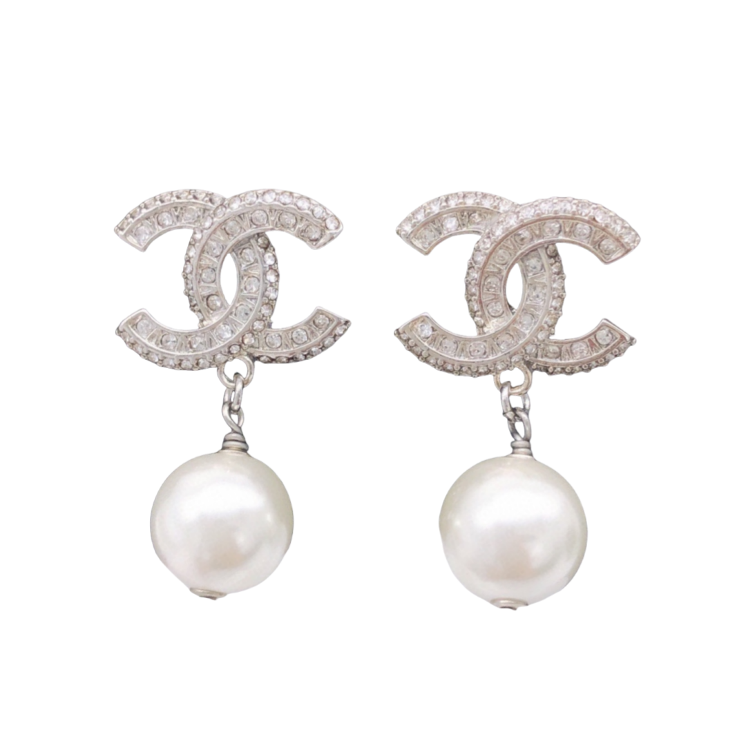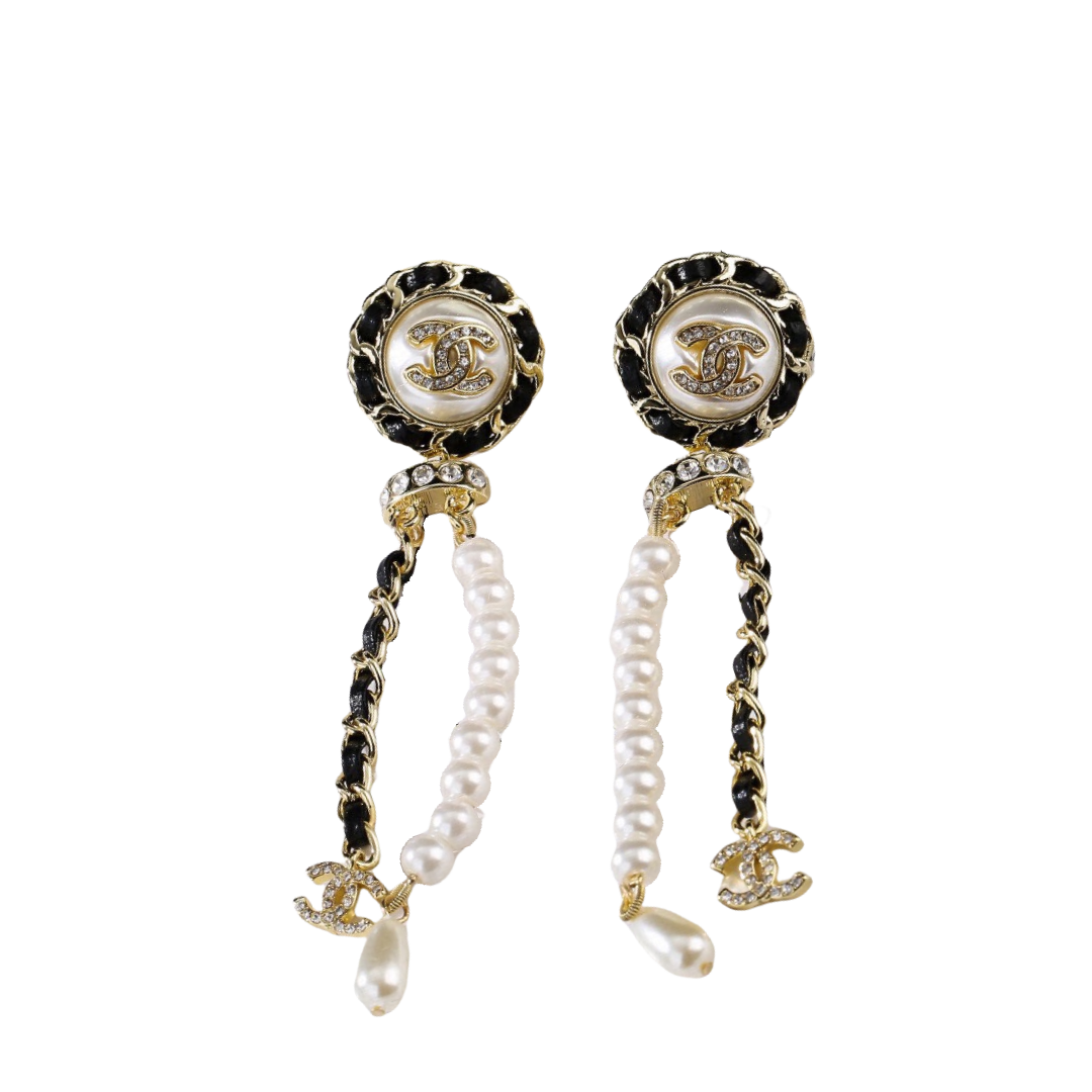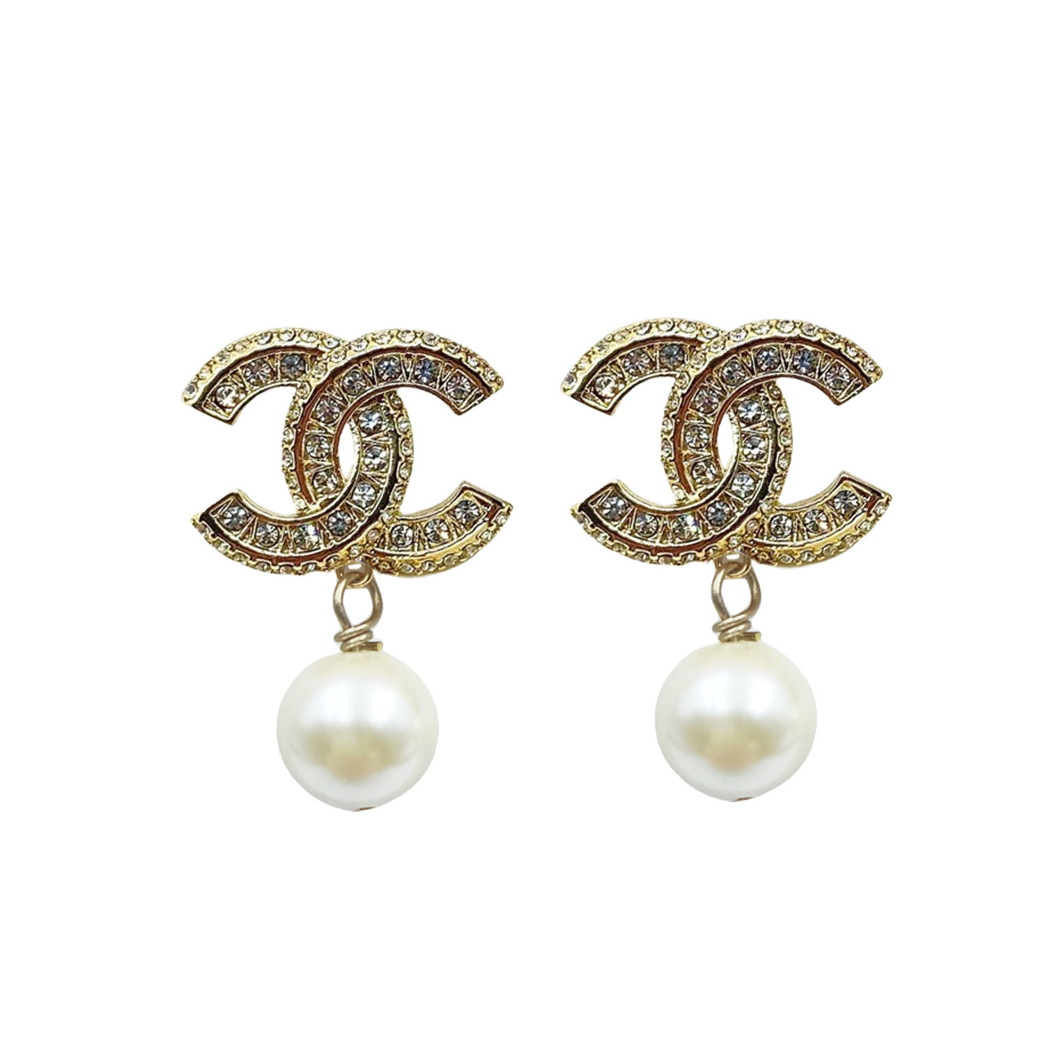 CCE041 Chanel White Number 5 perfume bottle with CC logo drop earring