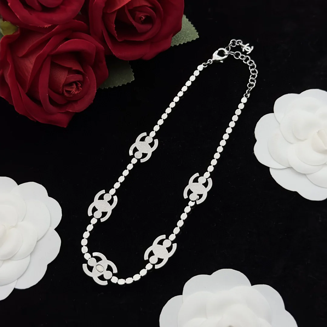 CCN028 Chanel pearl chain with crystal star and CC logo choker Necklace