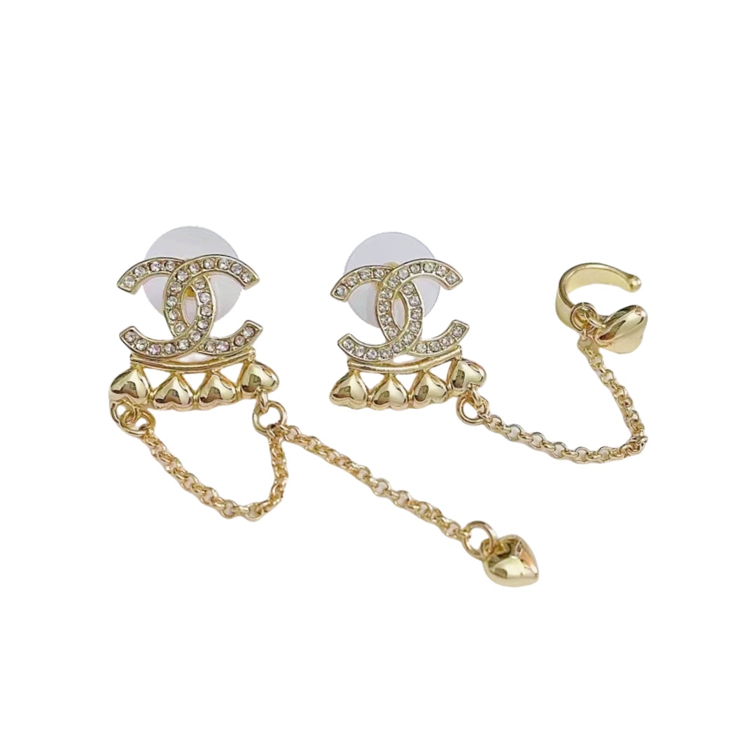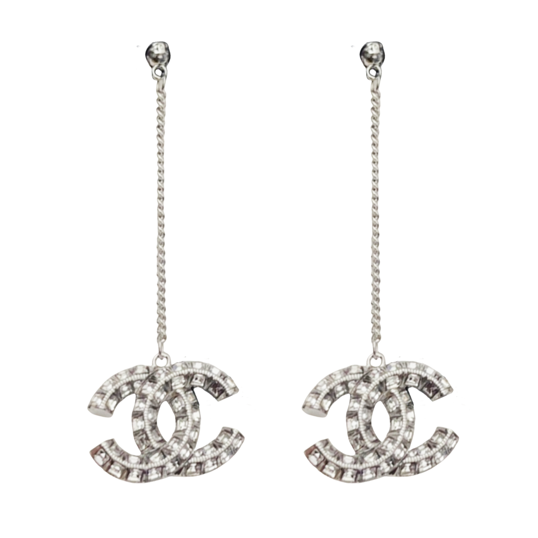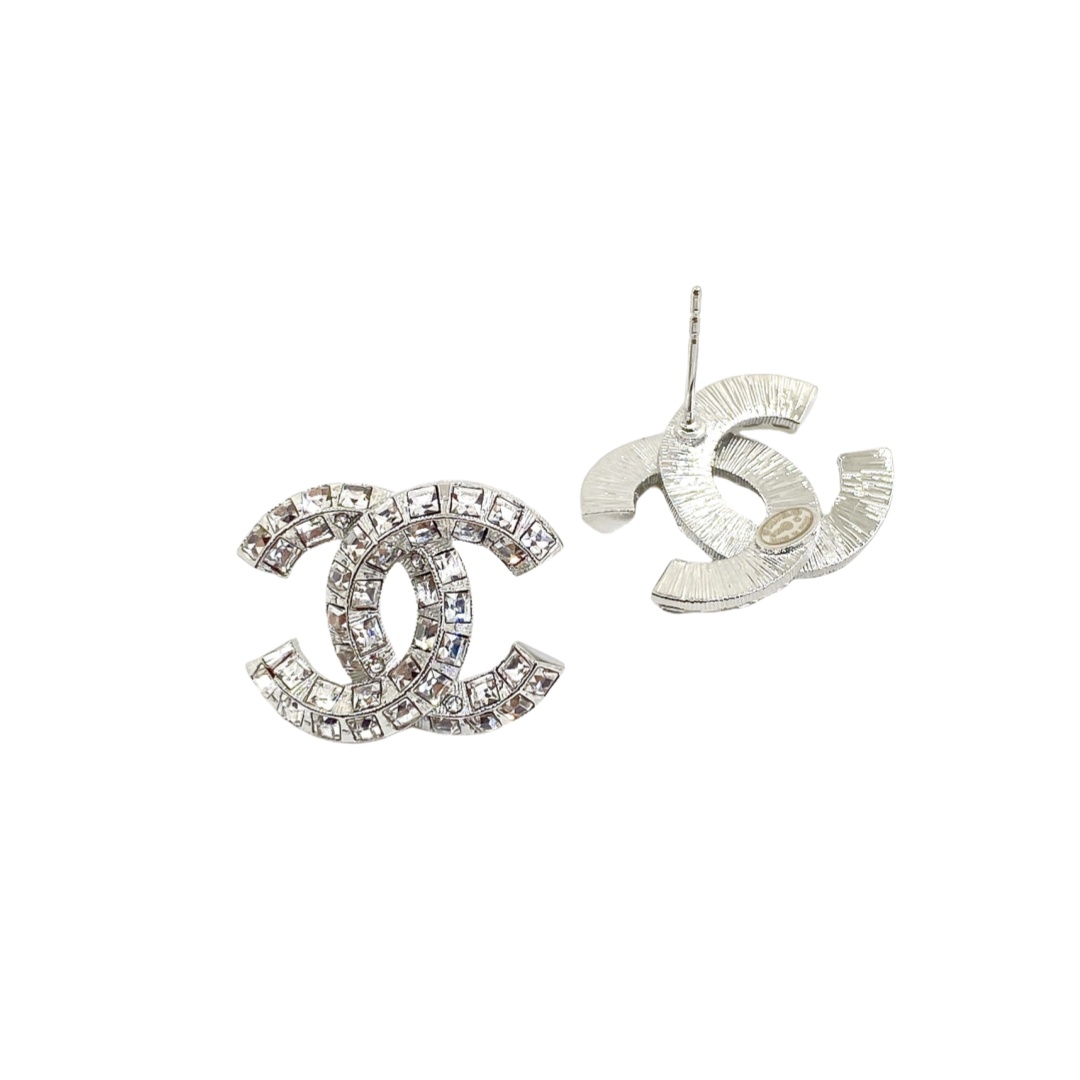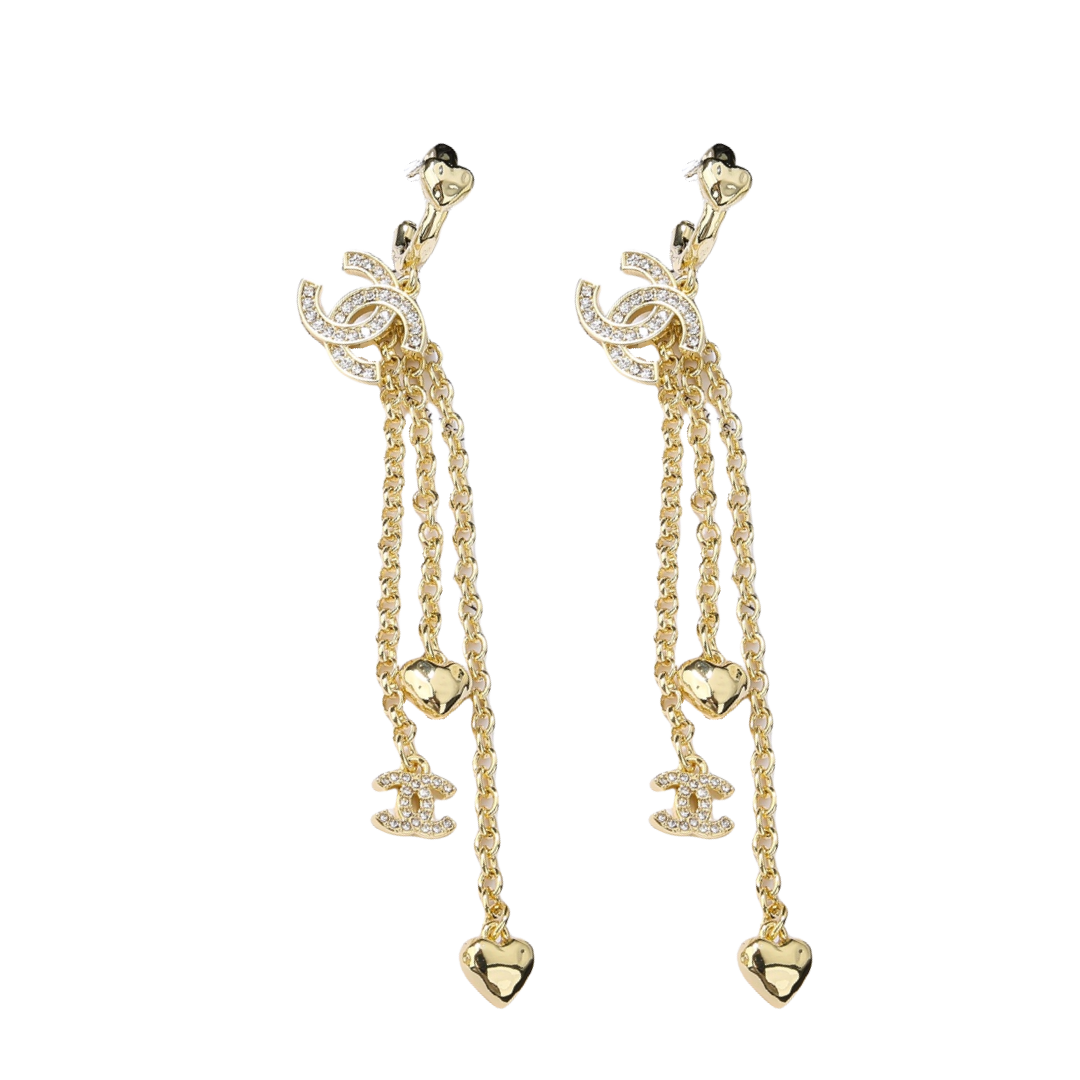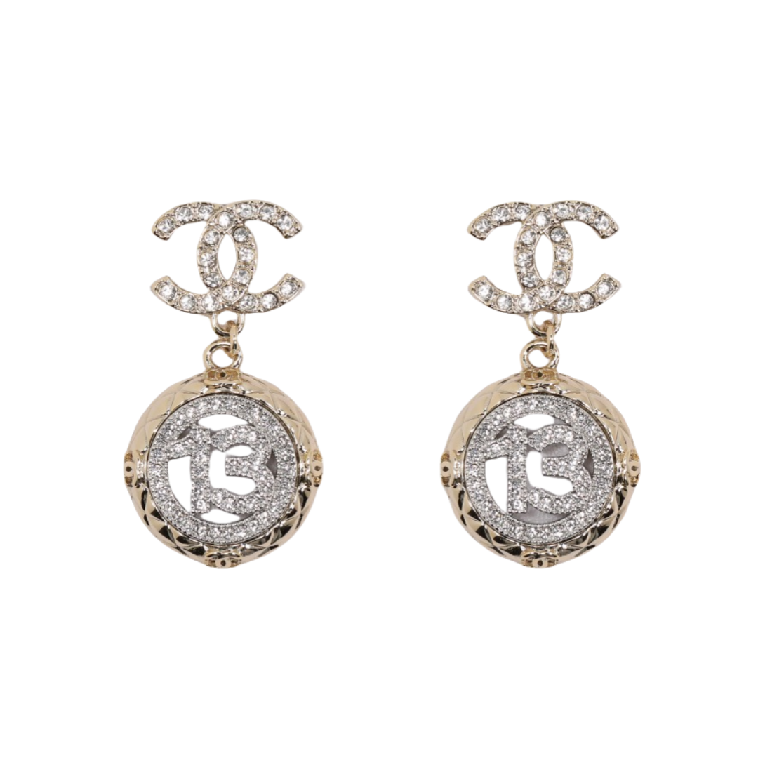CCE149 Hollow colored flower with cc logo drop earrings in metal and crystal