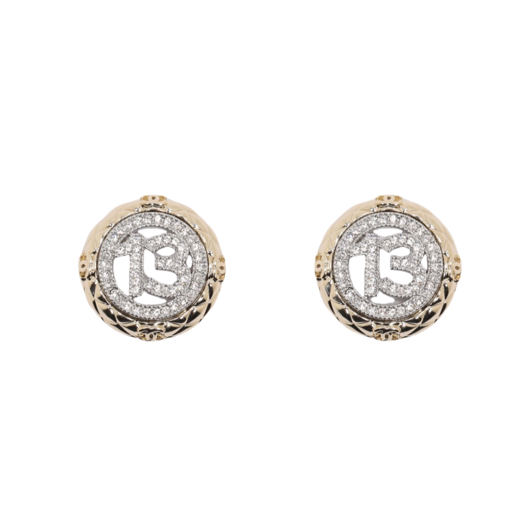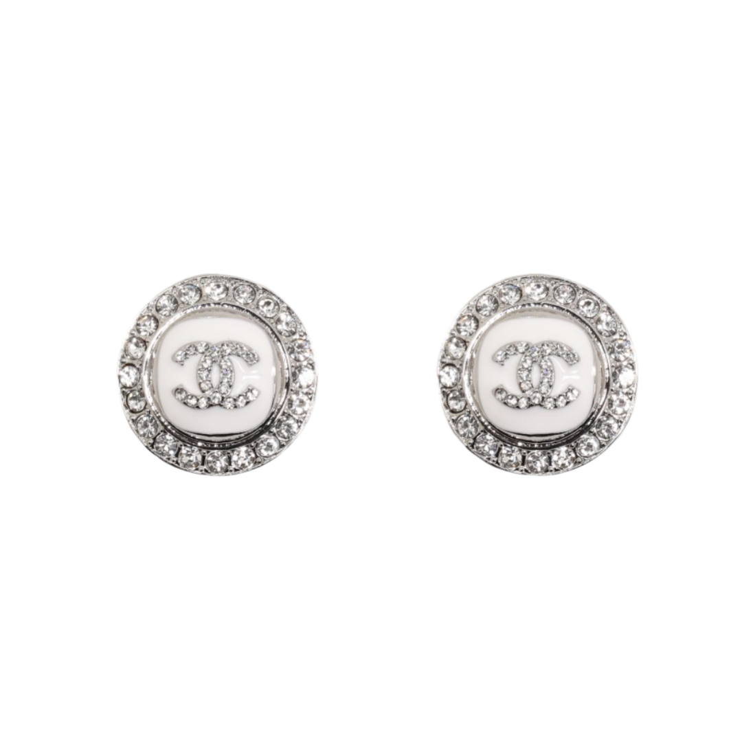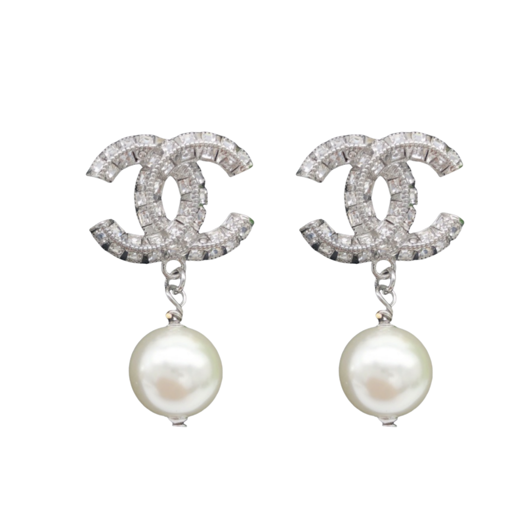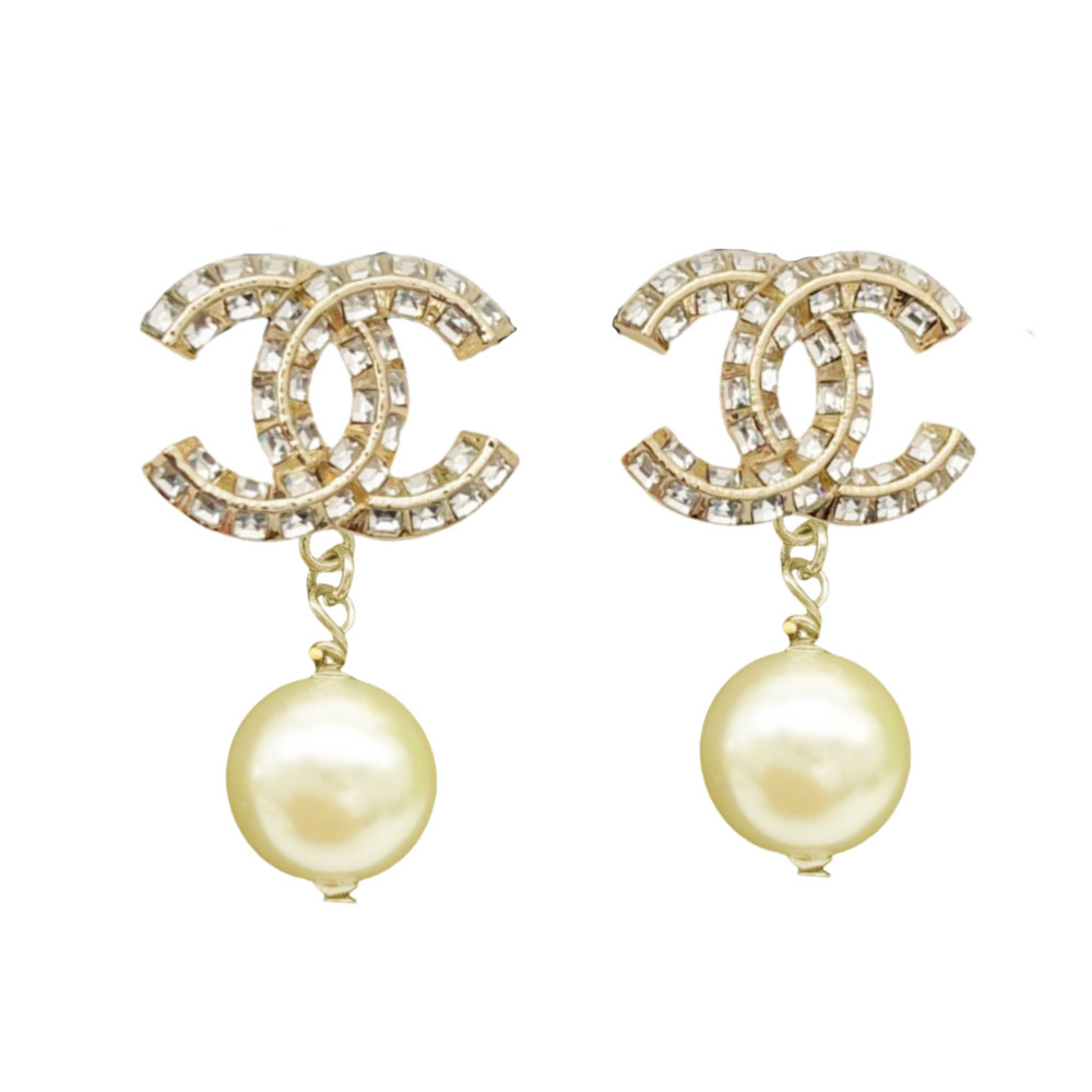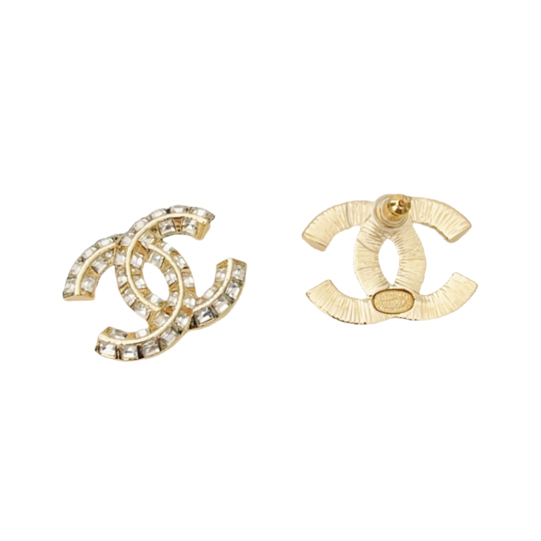 CCE149 Hollow colored flower with cc logo drop earrings in metal and crystal