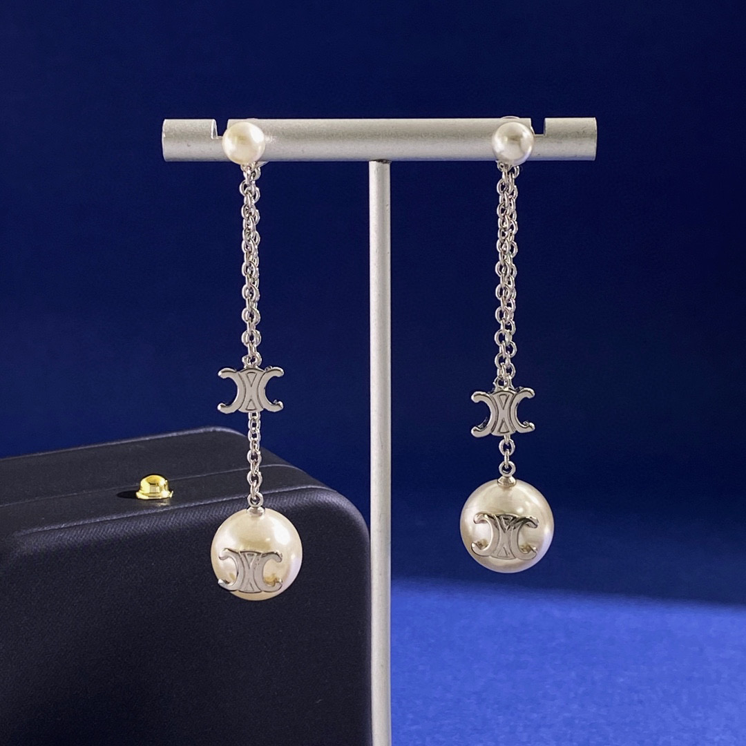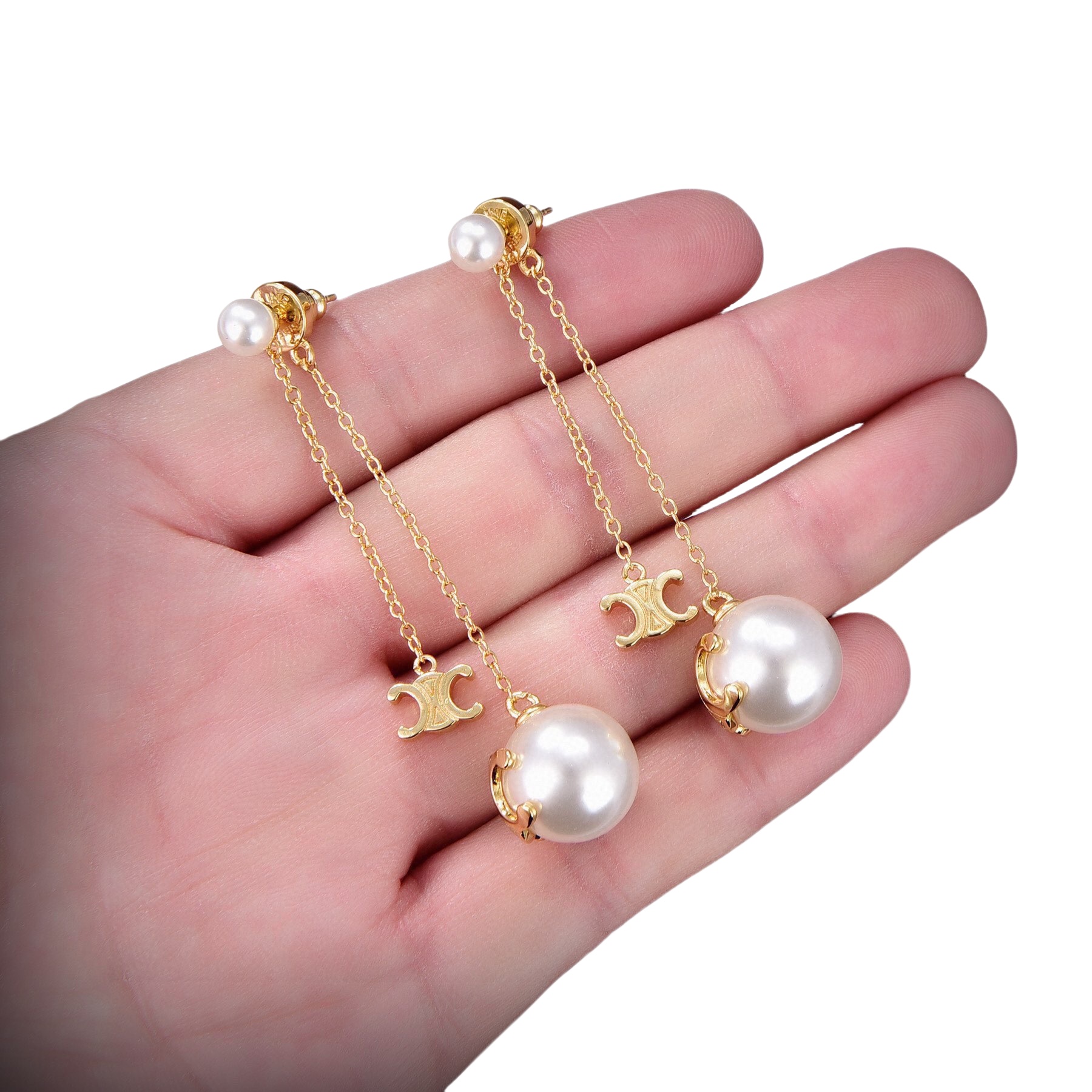 CLE047 Triomphe Pearl drop earring in metal and pearl