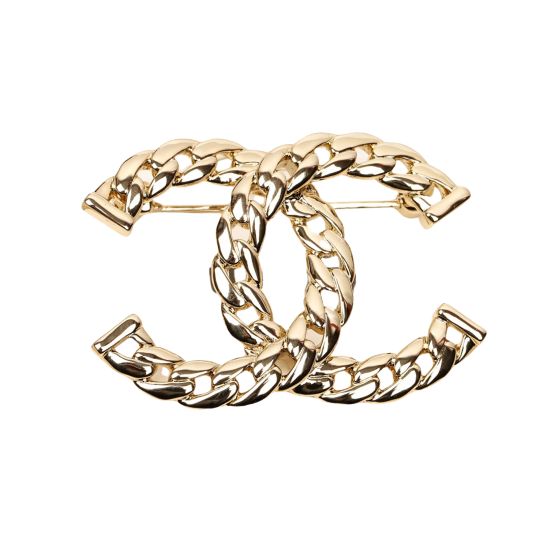BCB332 24P Metal letter and chain CC logo brooch pin