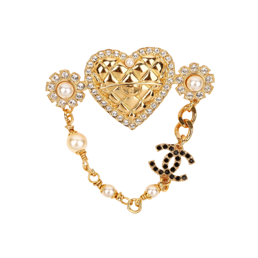 BCB413 Crystal Heart With CC logo brooch pin