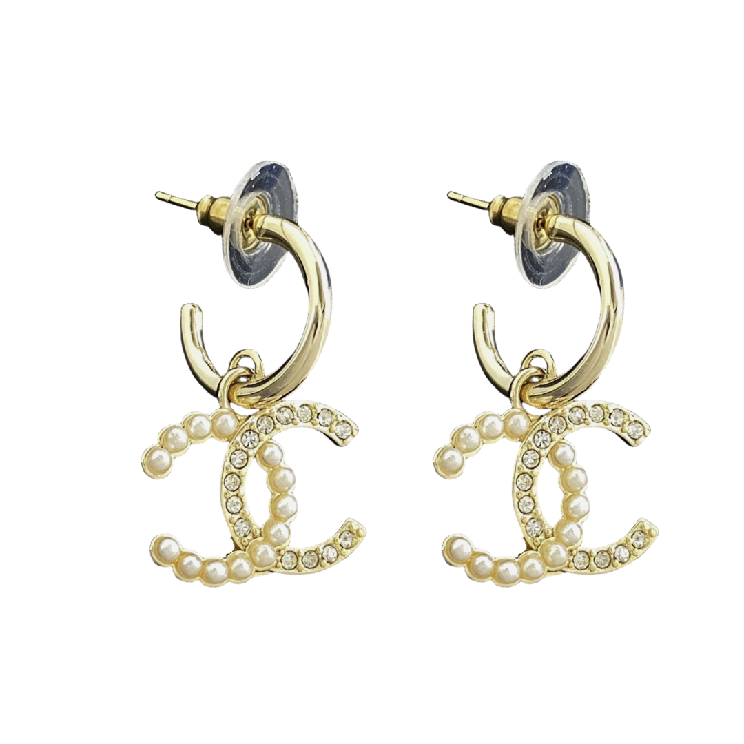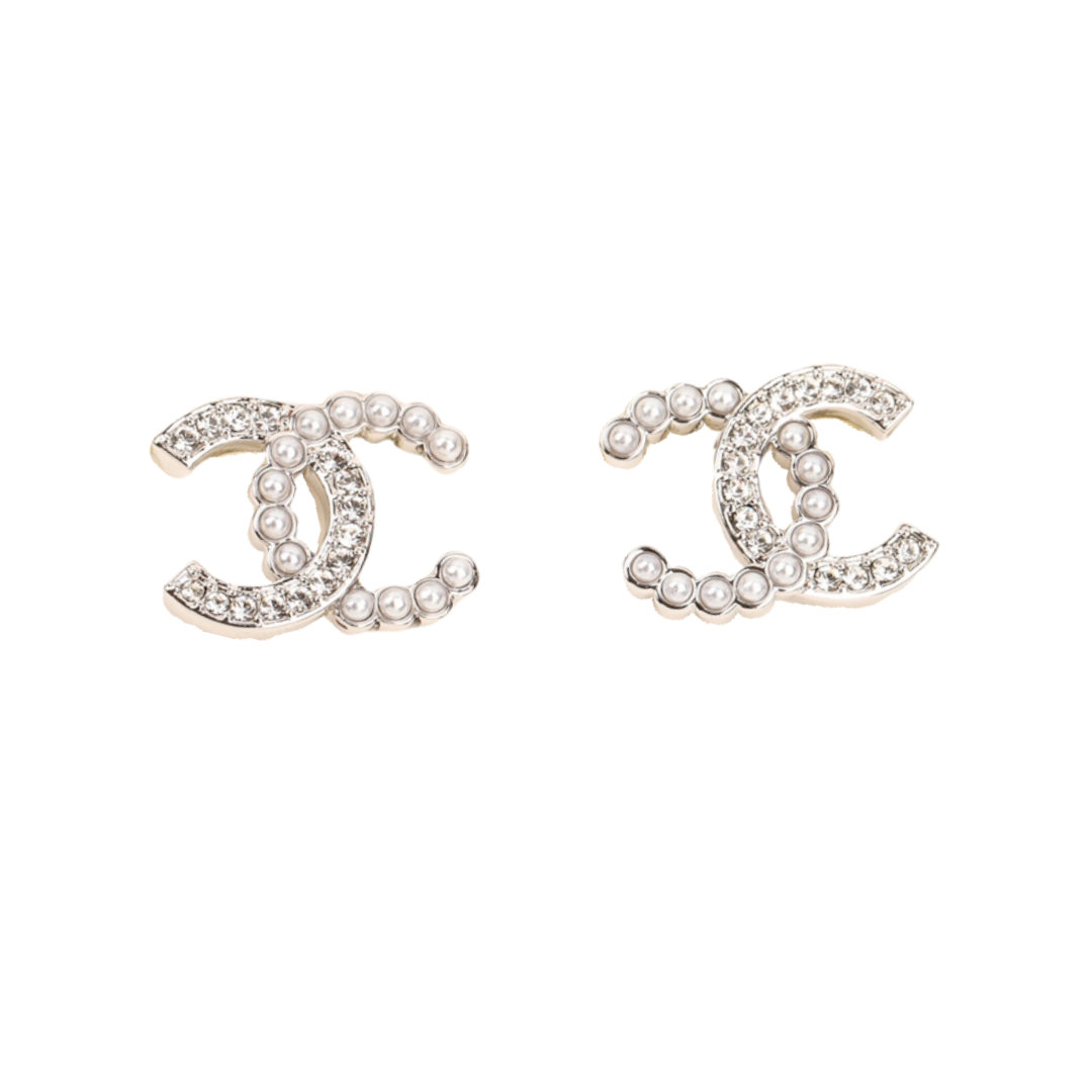 CCE554 Chanel 24s pearl and crystal cc logo stud earrings