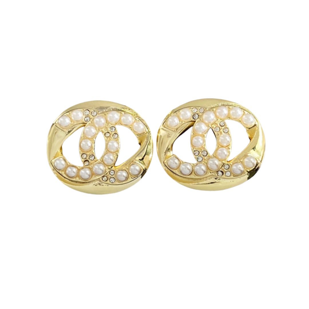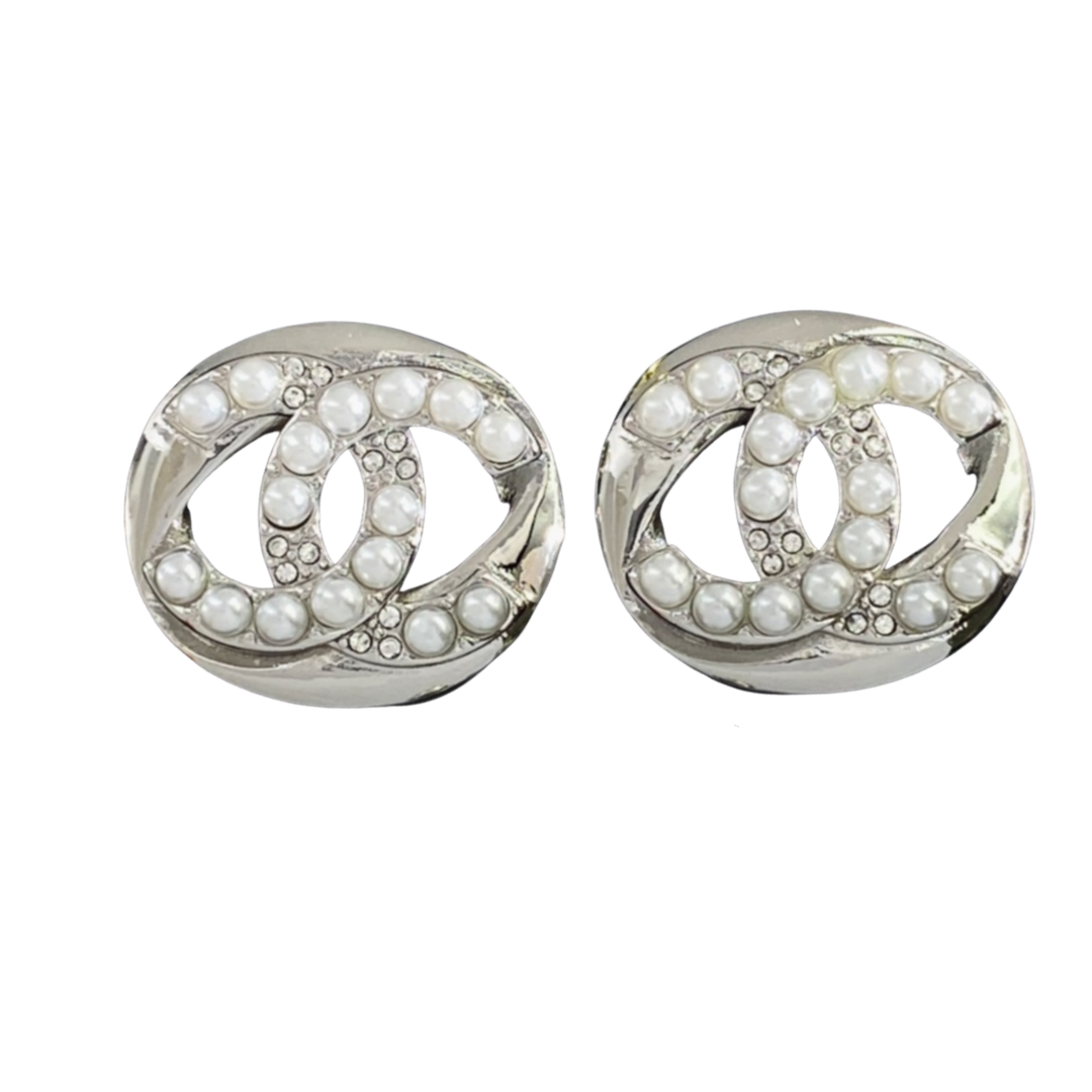 CCE274 Chanel 25P hollow crystal round cc stud earrings