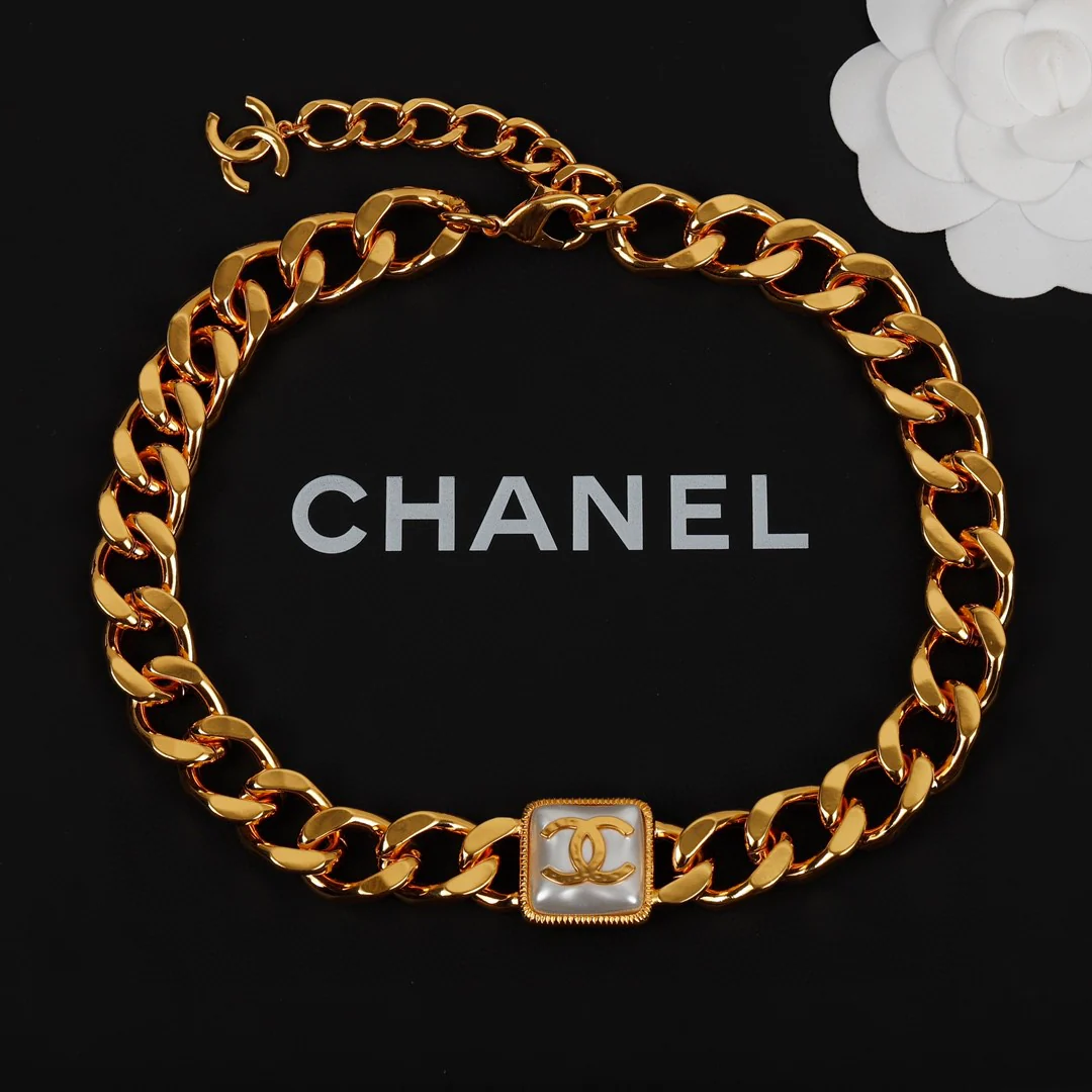 CCN154 Peal chain with Pink gemstone star and crystal cc logo choker necklace