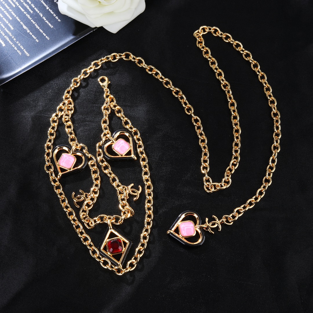 CCW054 CC metal leather with heart cc logo charm waist chain belt
