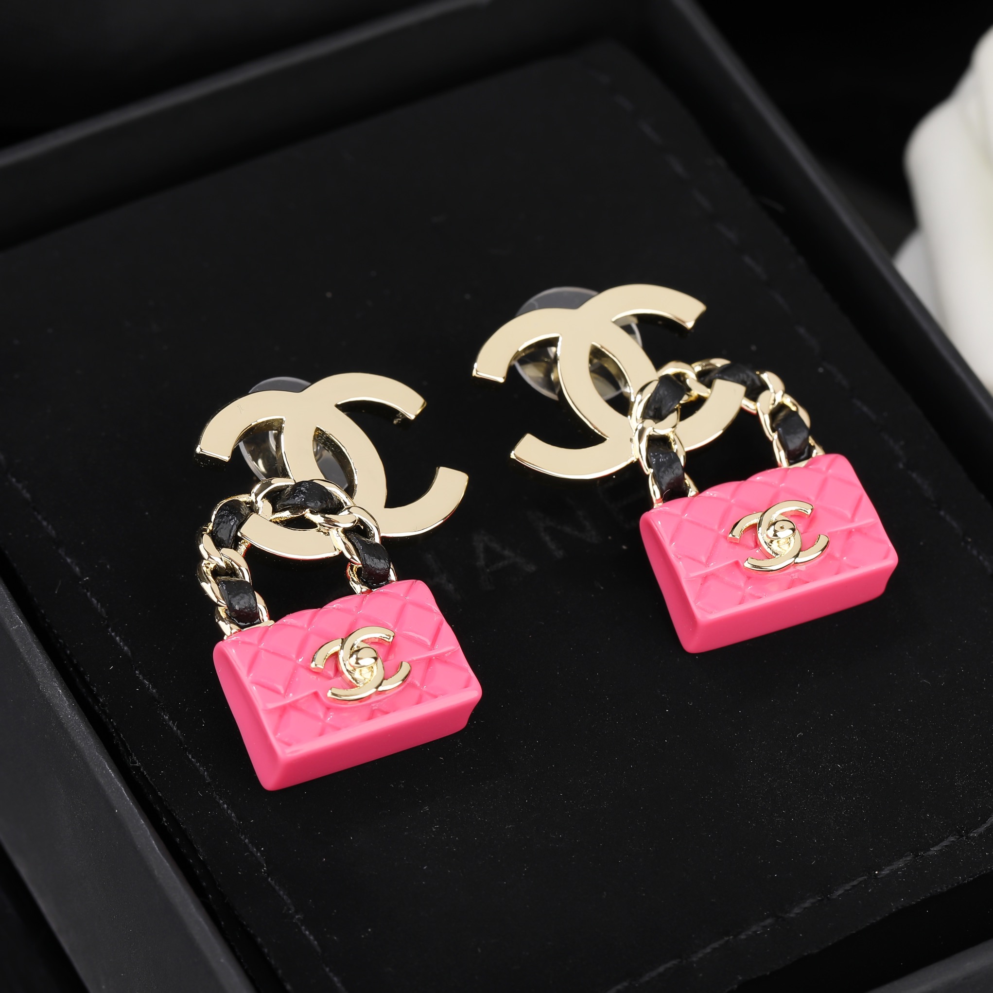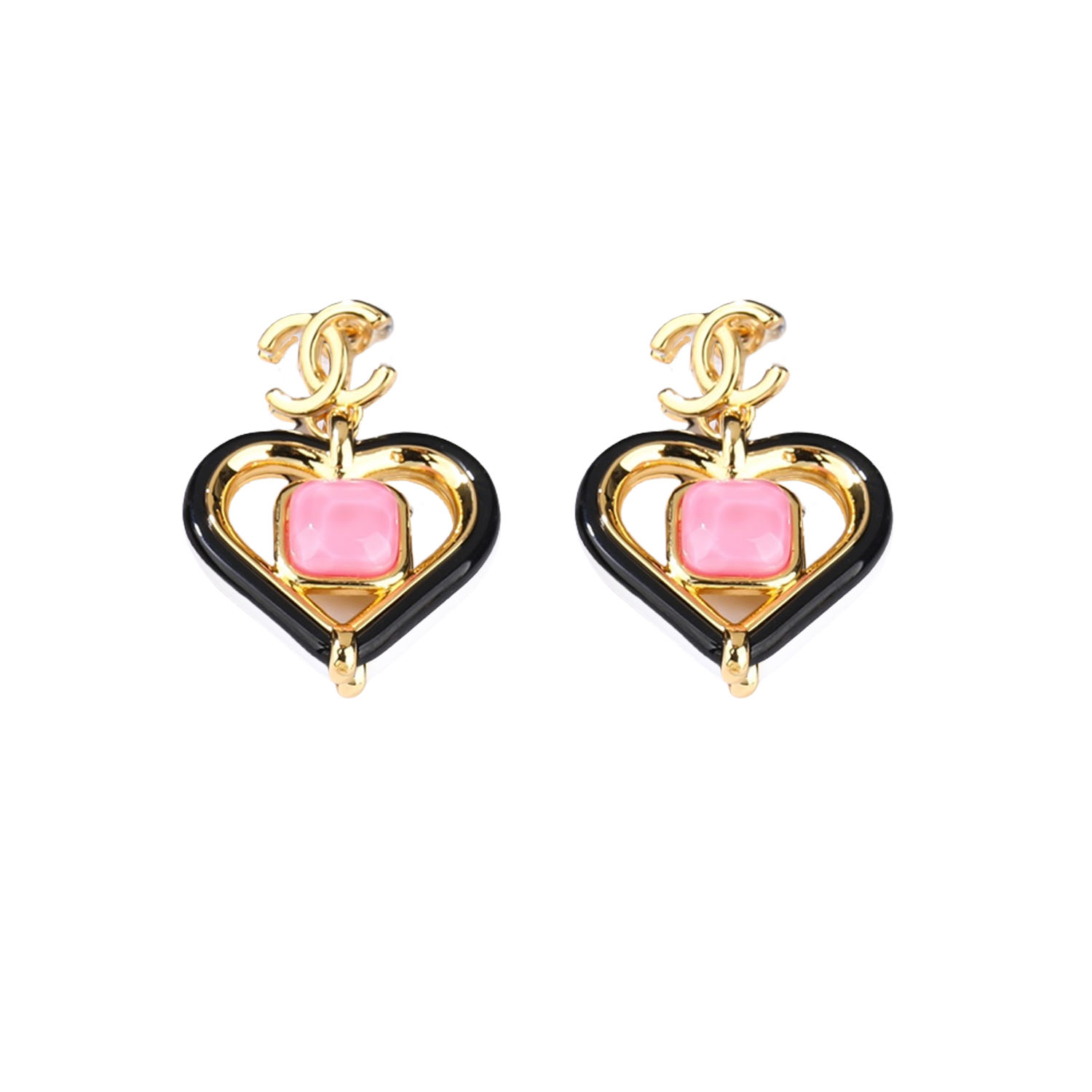 CCE022 Chanel square Pink crystal and white crystal cc logo drop earring