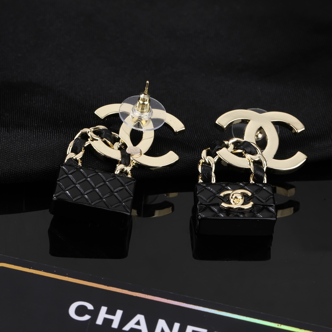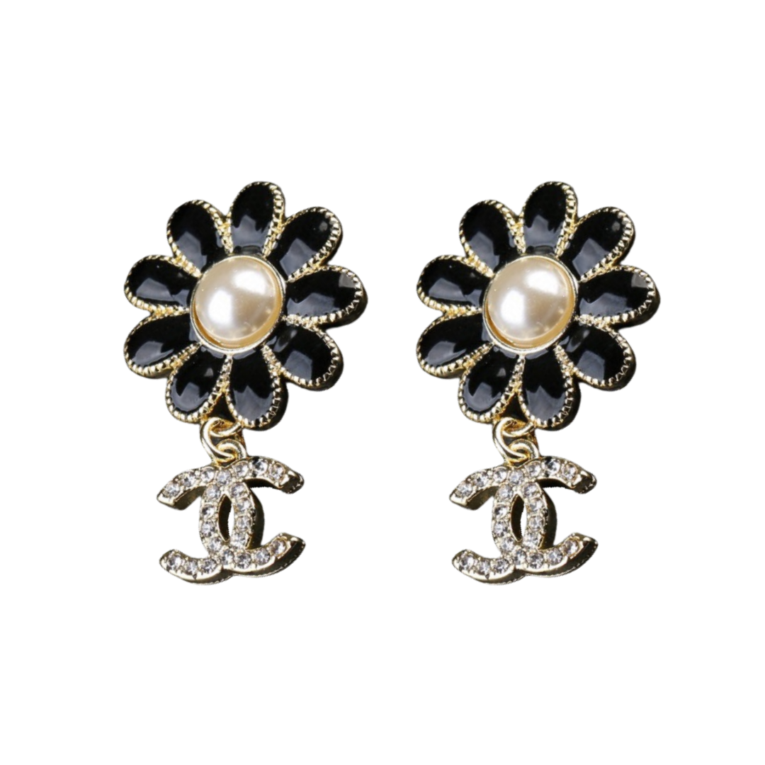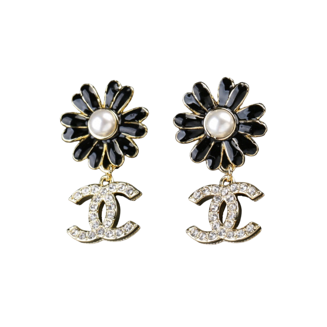 CCE049 Chanel crystal flower with heart star cc logo tassels pendant earrings