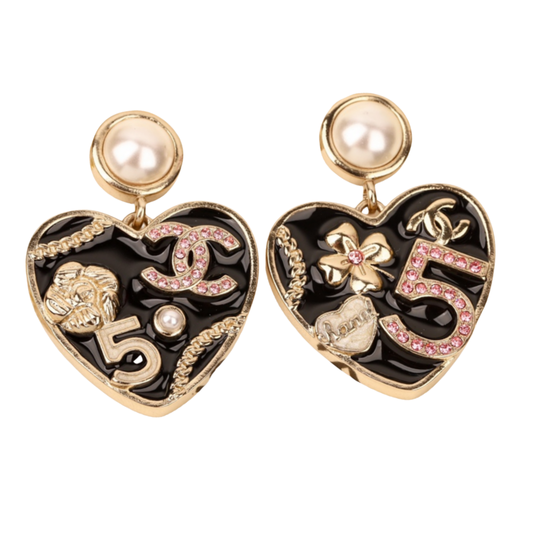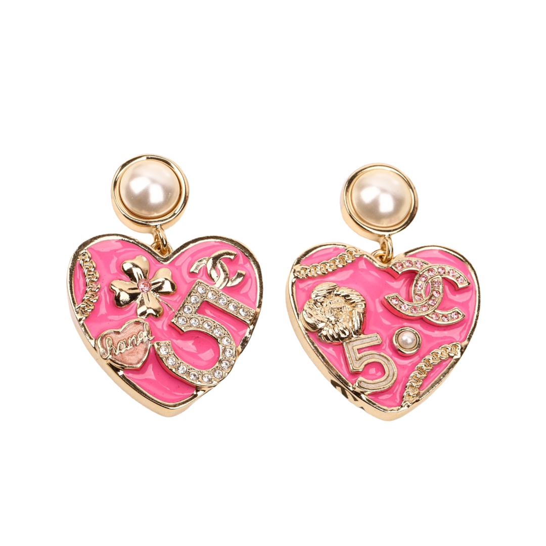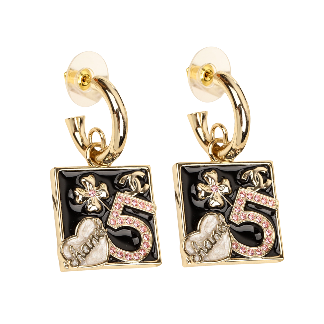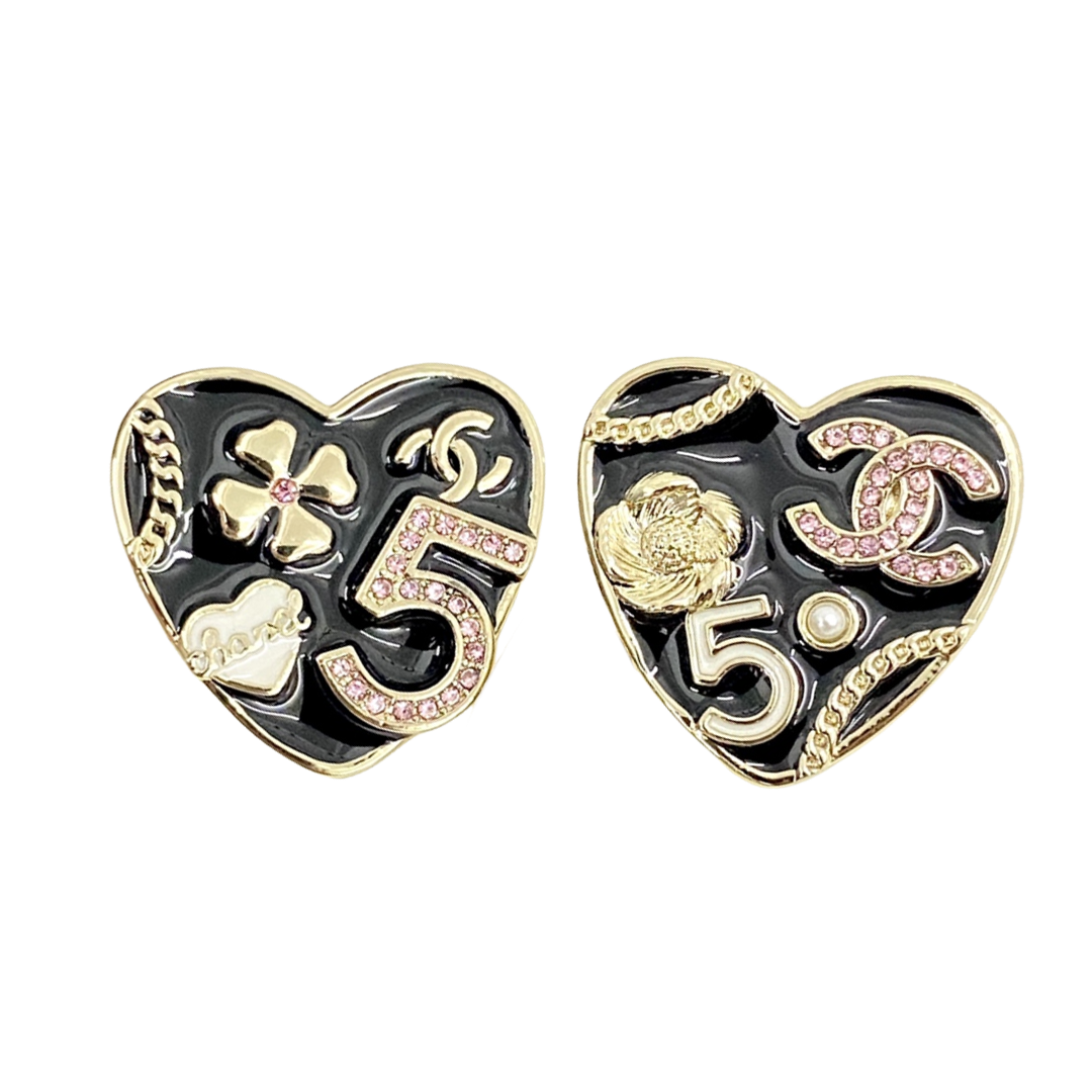 CCE632 Pink /Black enamel Heart /Square shaped multielement Chain No 5 camellia clover and crystal CC Logo Earring