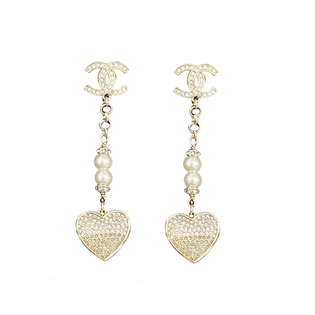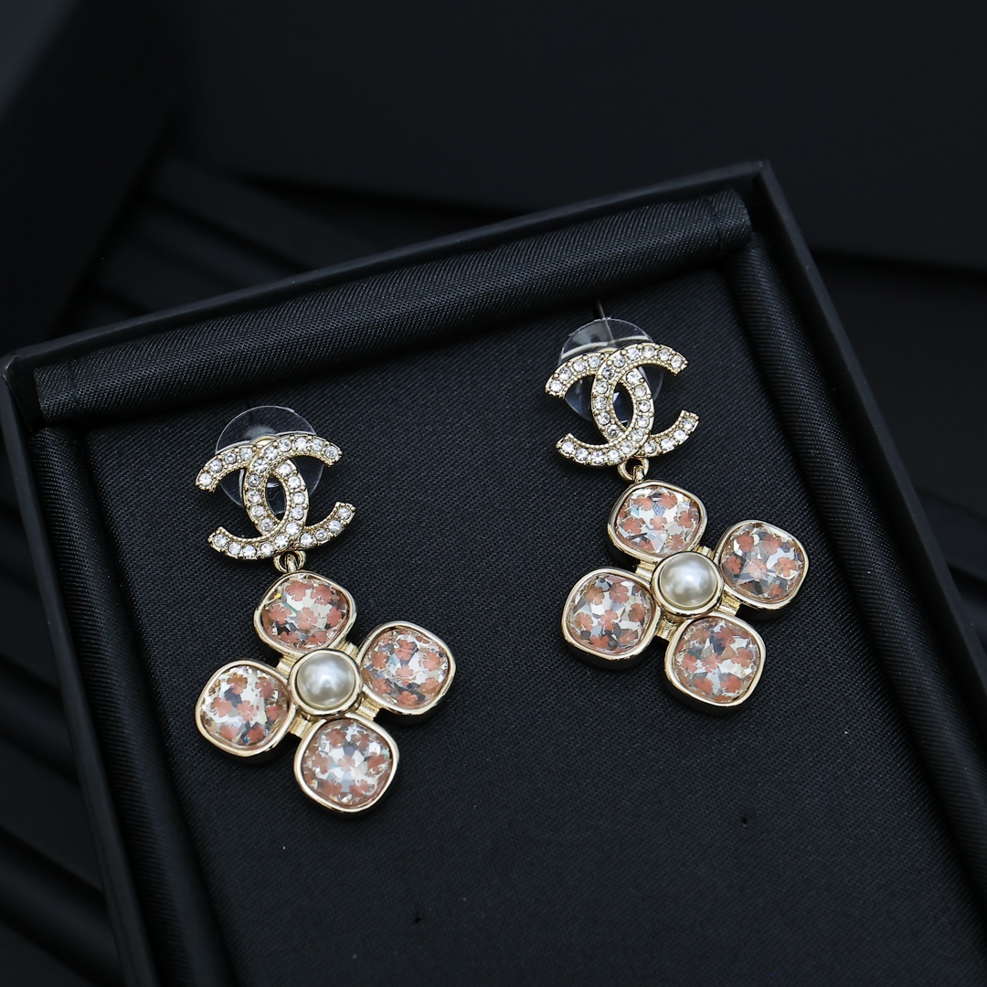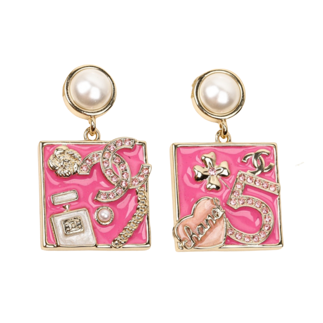 CCE632 Pink /Black enamel Heart /Square shaped multielement Chain No 5 camellia clover and crystal CC Logo Earring