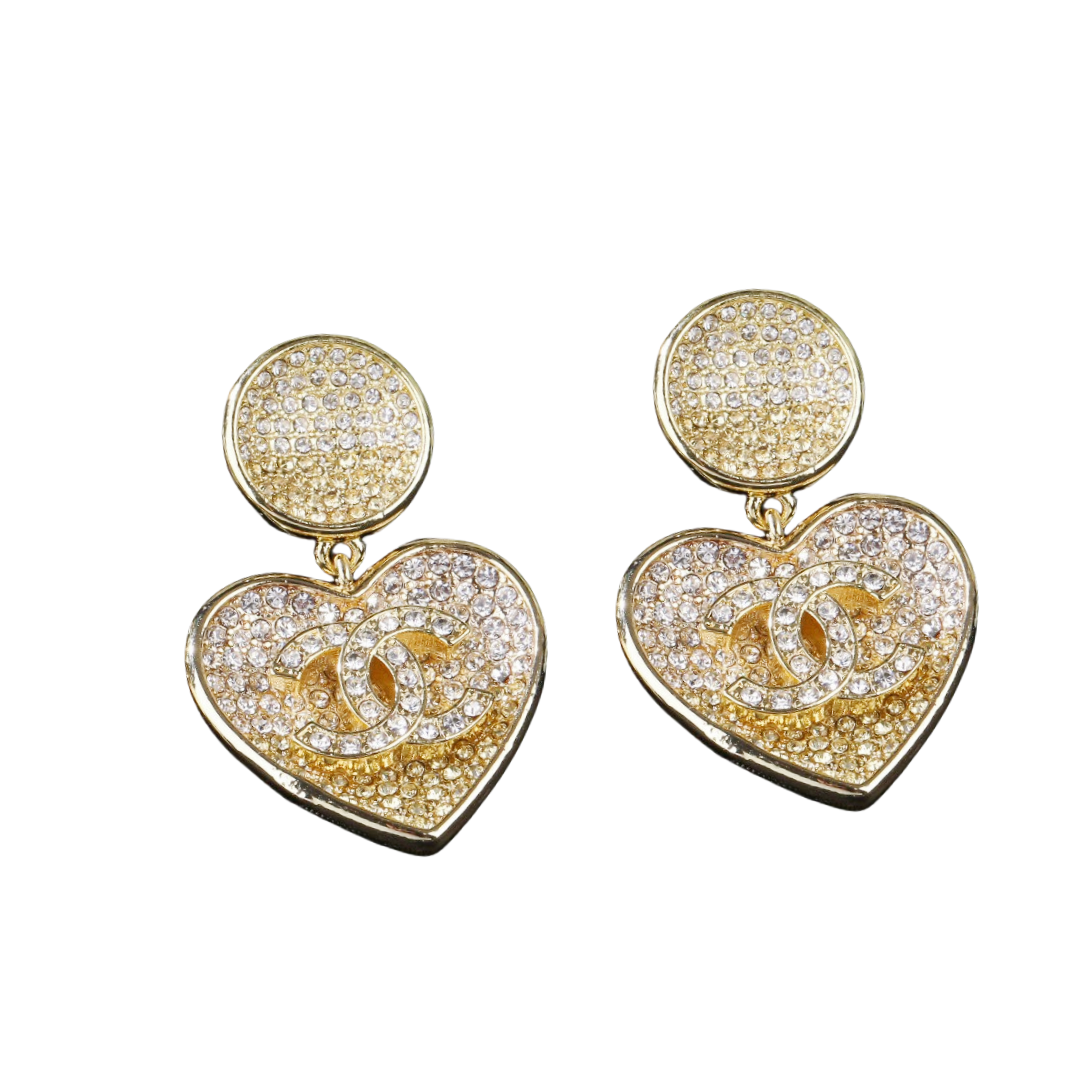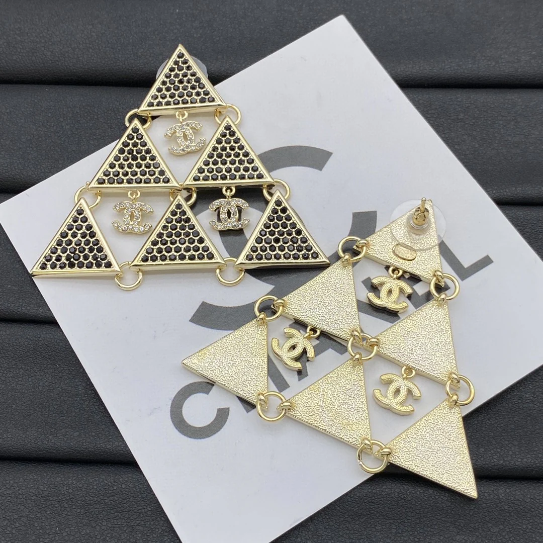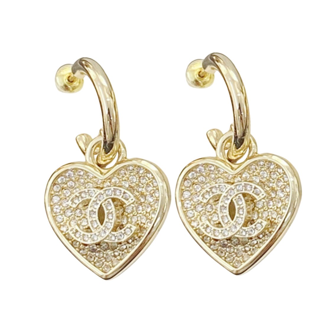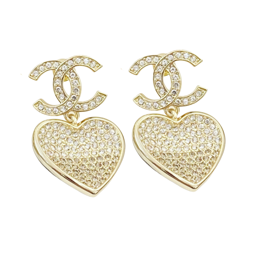 CCE632 Pink /Black enamel Heart /Square shaped multielement Chain No 5 camellia clover and crystal CC Logo Earring