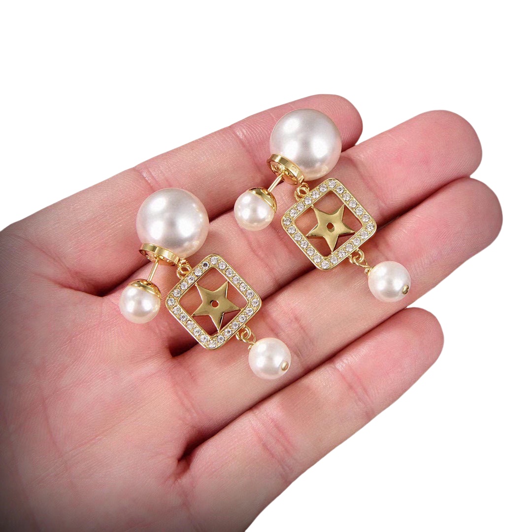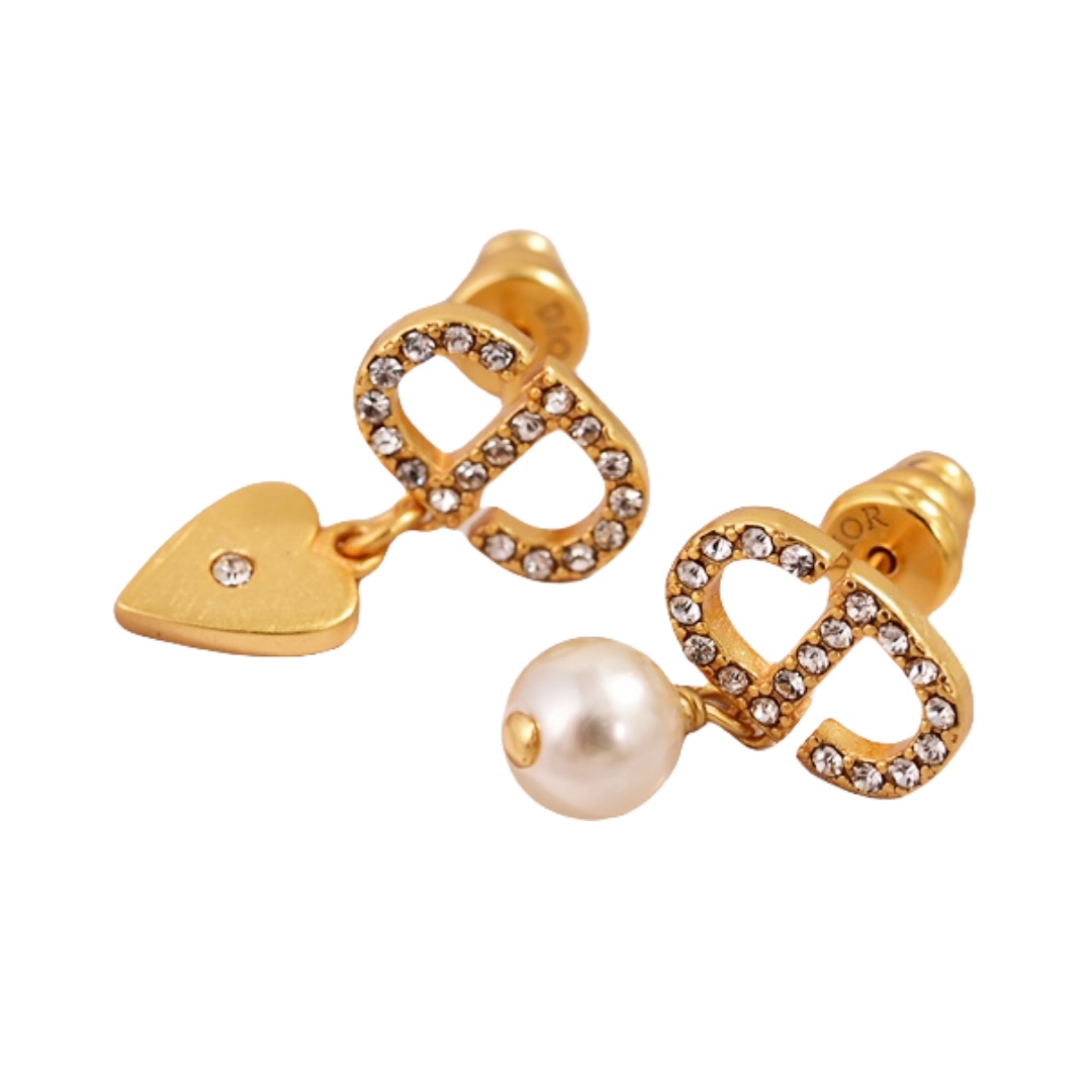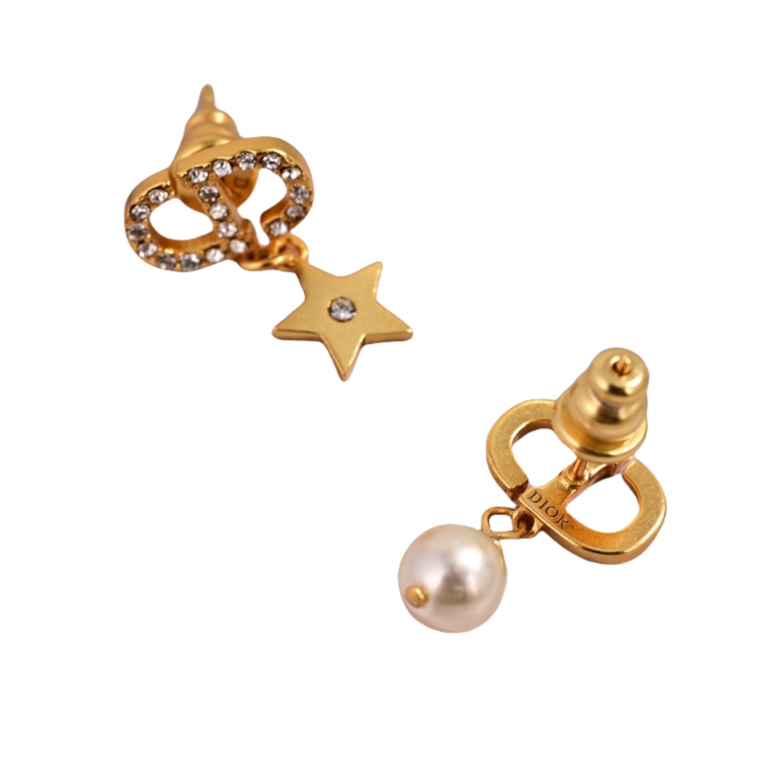CDE098 Asymmetry Dior letters and star stud earrings in metal gold and crystal