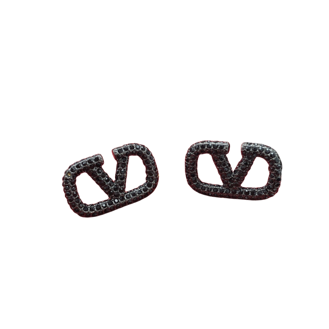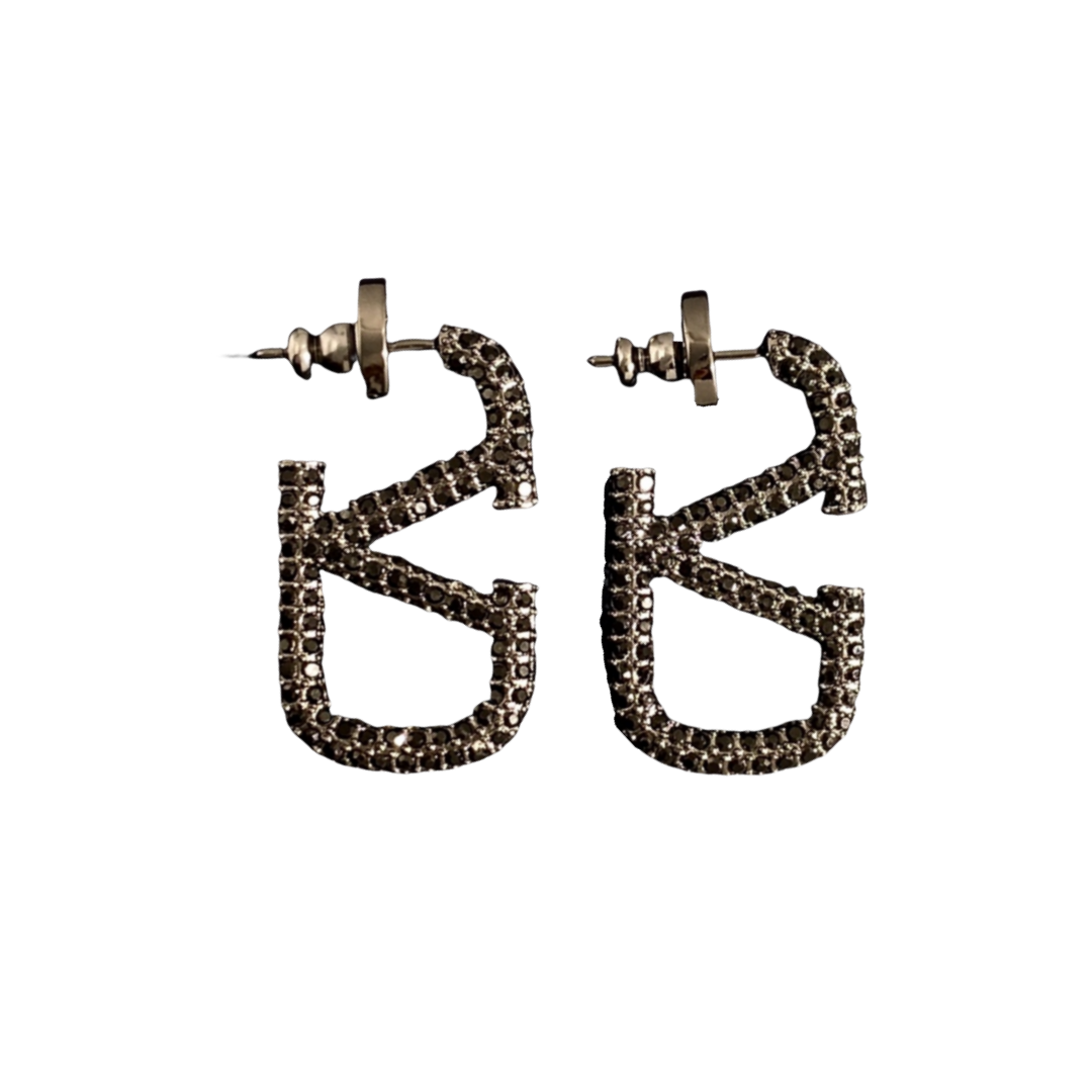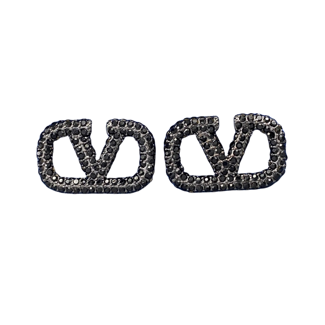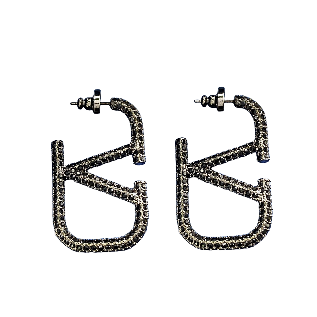 VTE010 Valentino Garavani Vlogo Signature Earrings in Metal Black Crystals