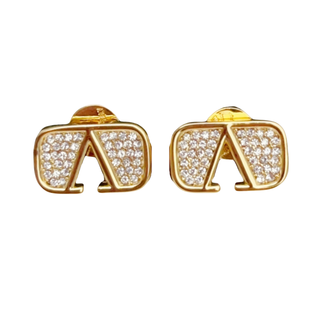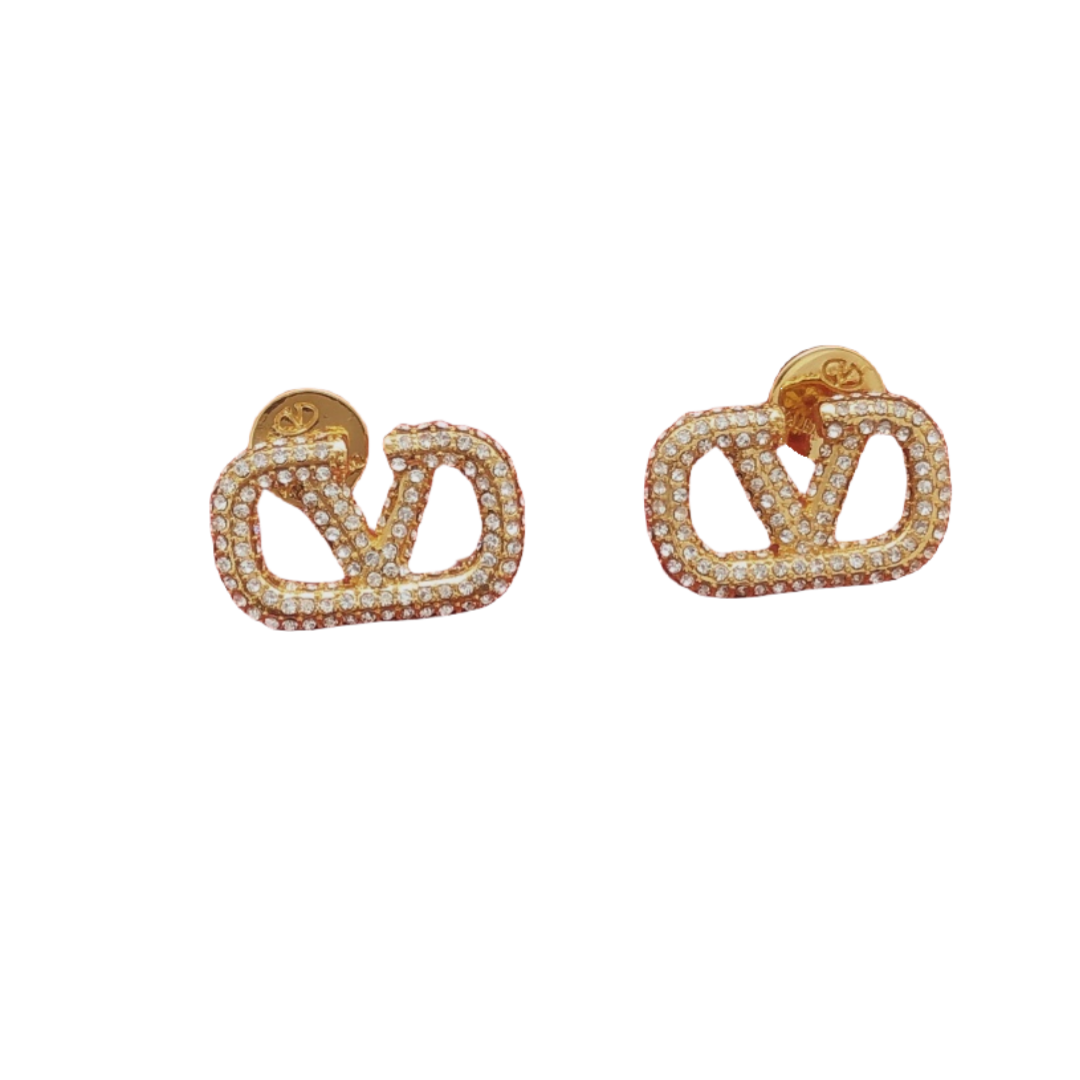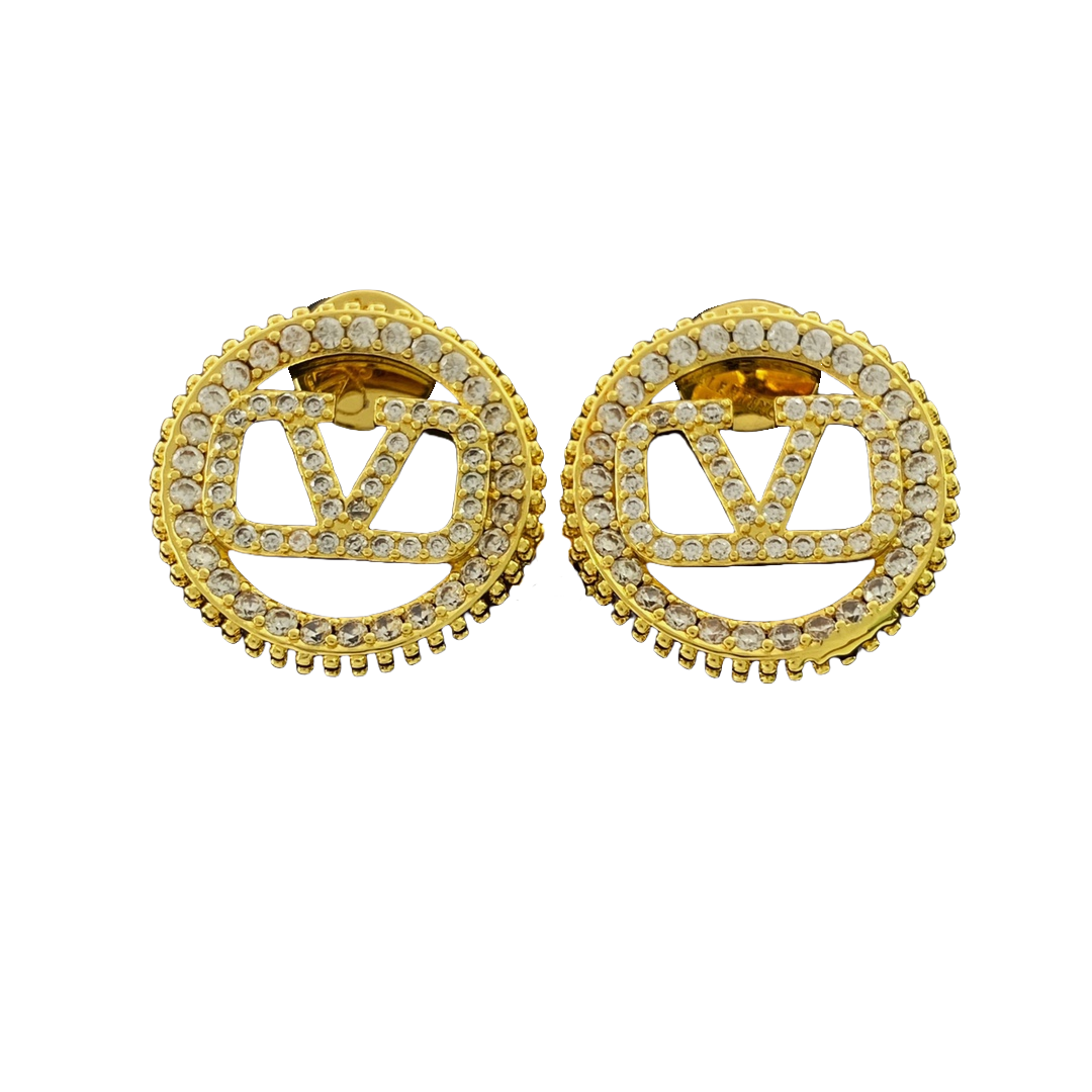 VTE013 Valentino Garavani Gold VLogo Signature stud Earrings in metal and crystal