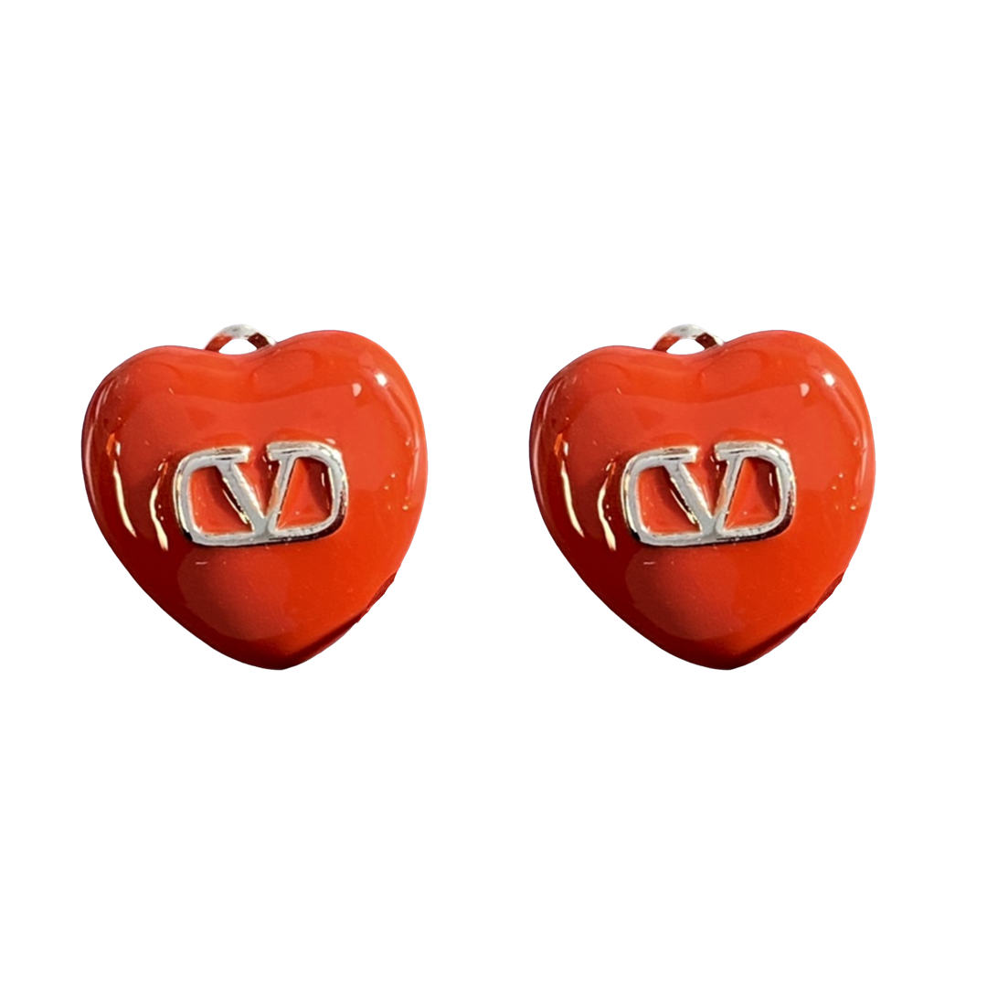 VTE014 Valentino Garavani Gold VLogo Signature Pearl Earrings with red heart pendant