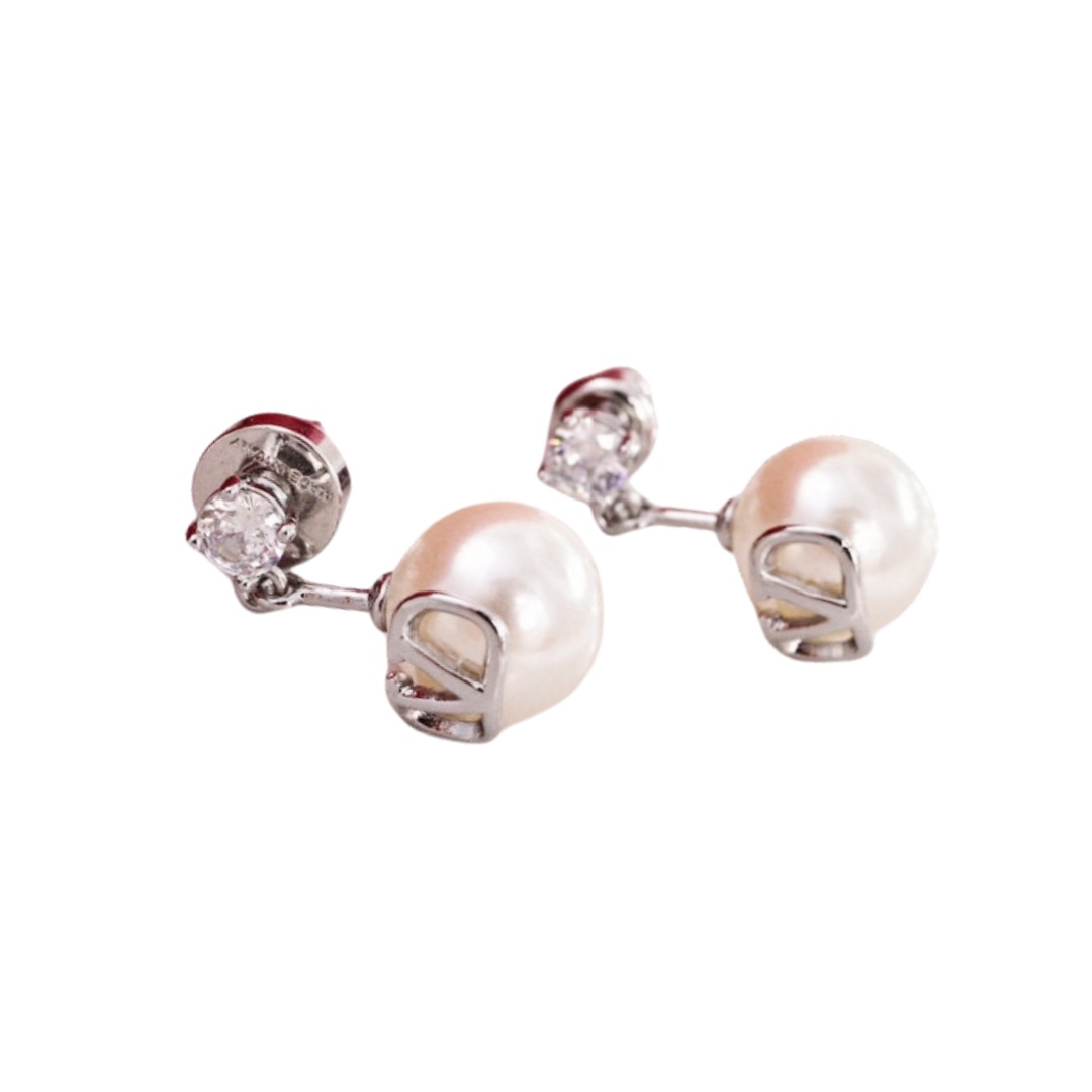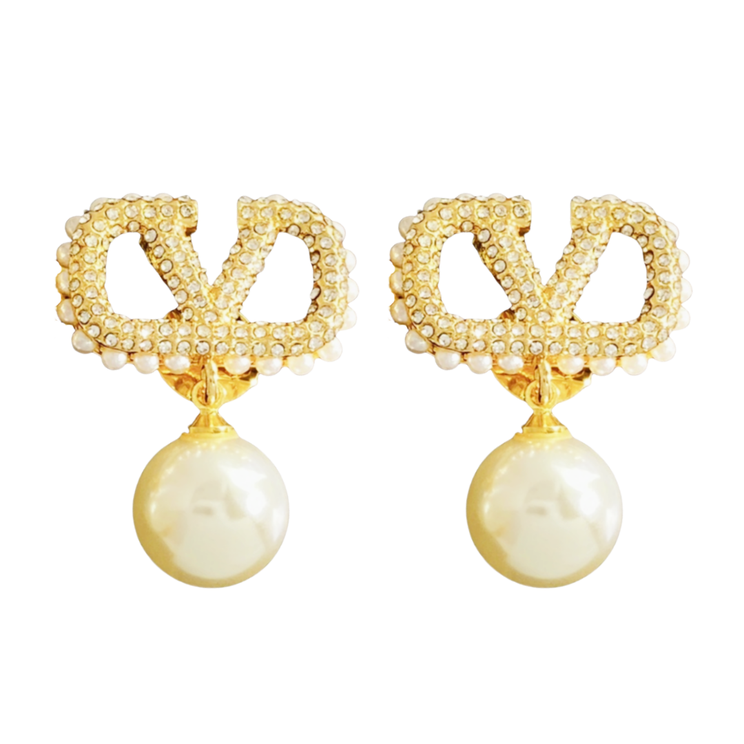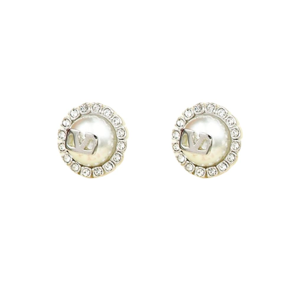 VTE007 Valentino Garavani Vlogo Signature Earrings in Metal Crystals and Resin Pearls