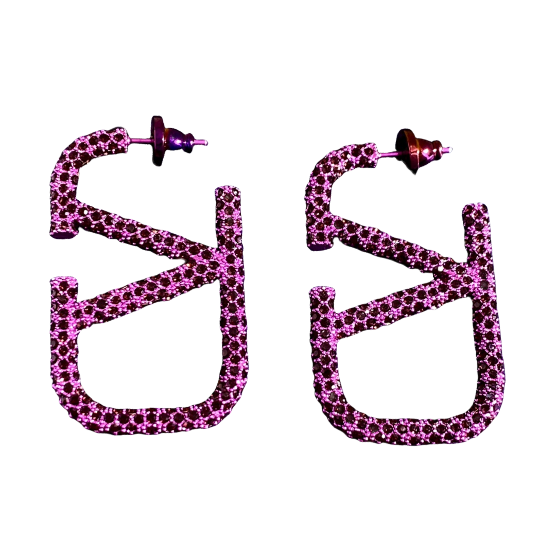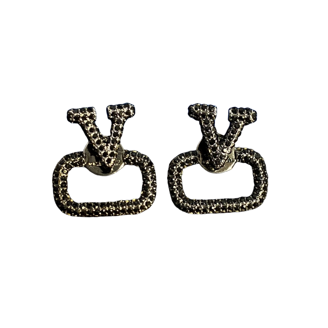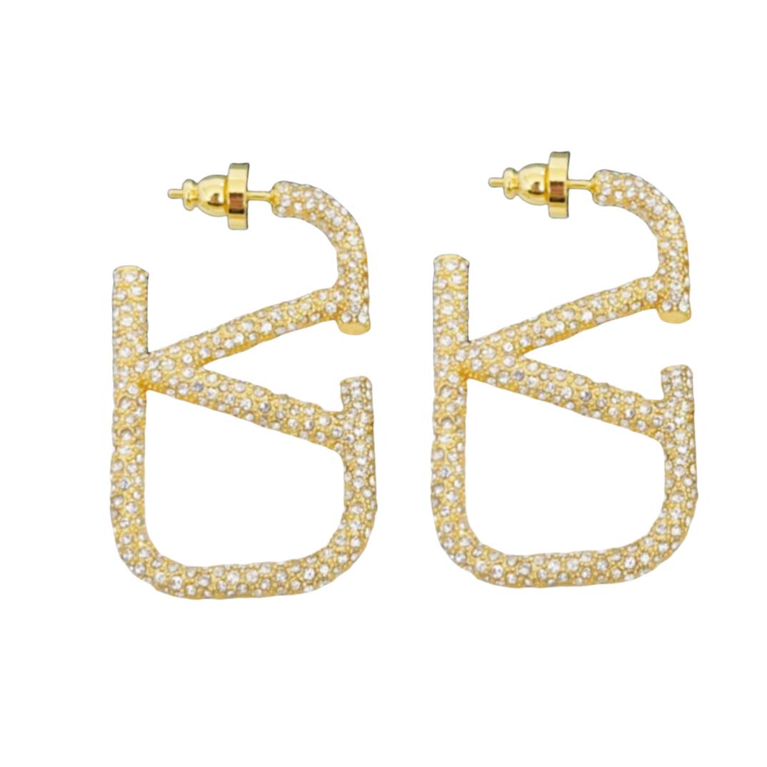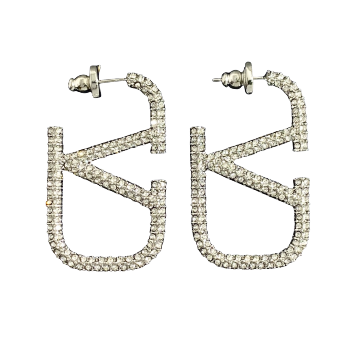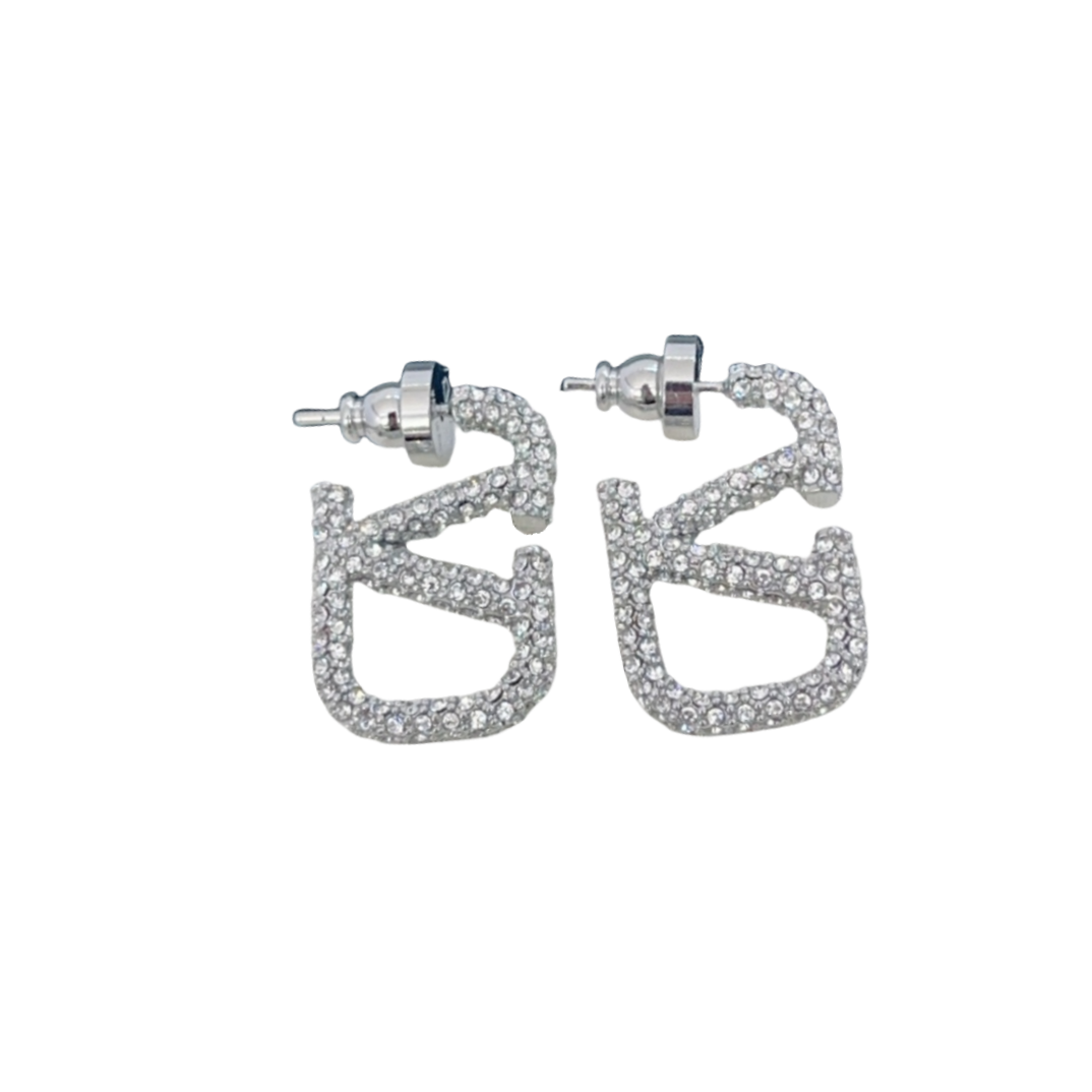 VTE020 Valentino Garavani Vlogo Signature Earrings in Metal Crystals Small