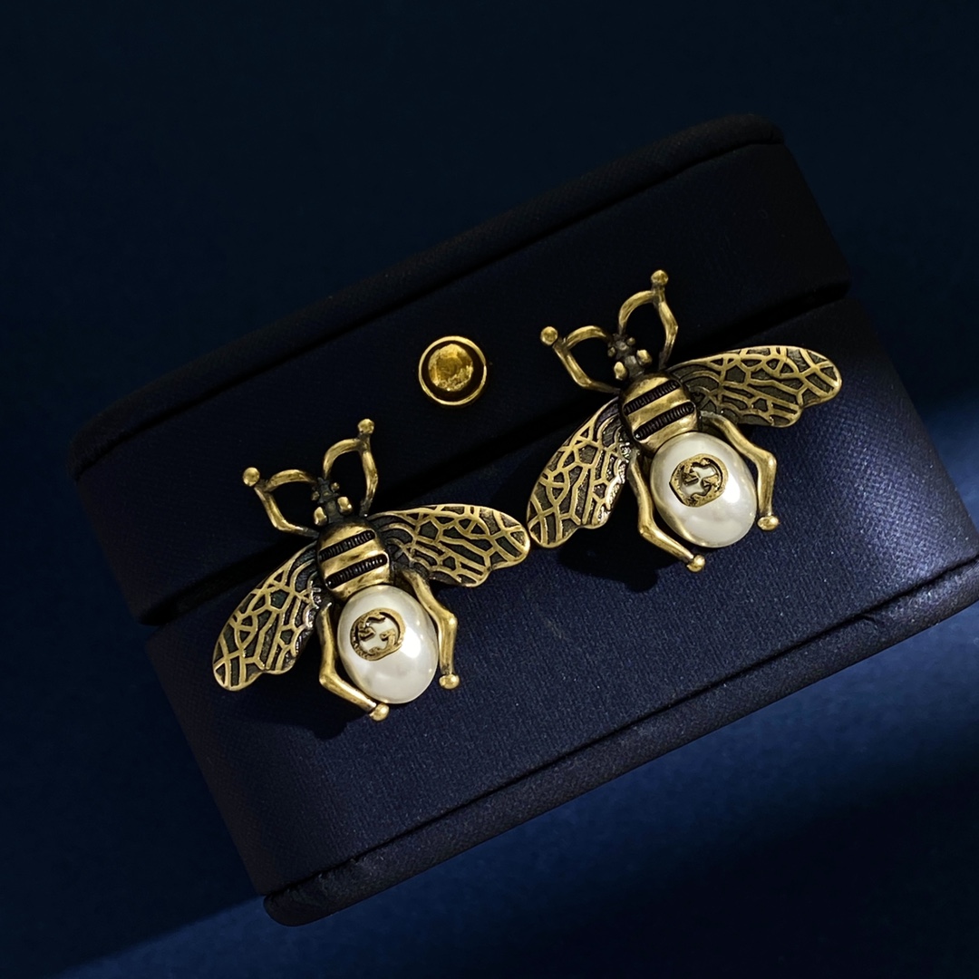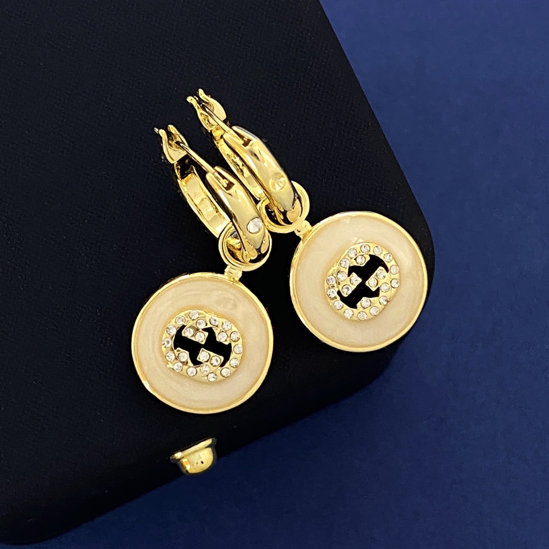 GGE021 Vintage bronze lion gg hook earring in metal and colorful diamond