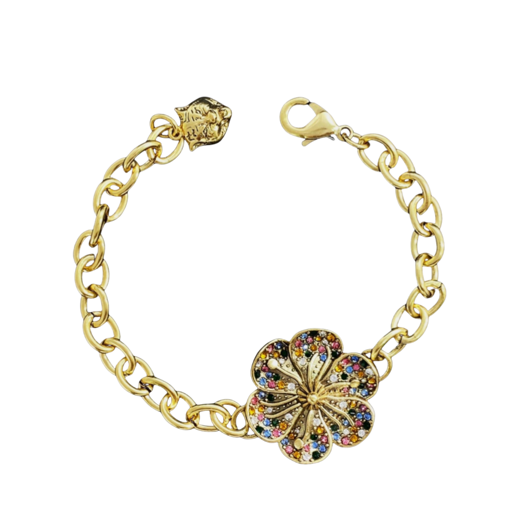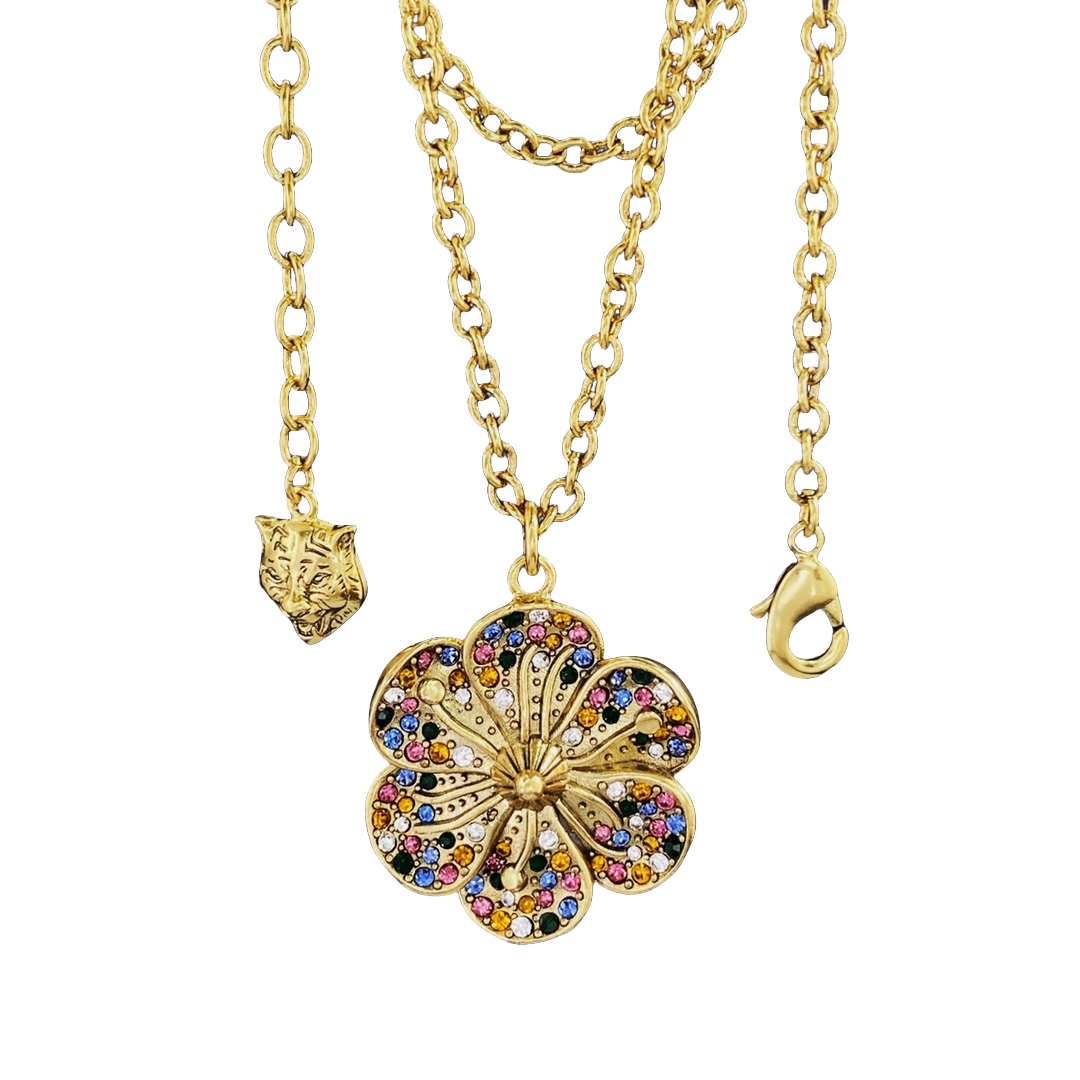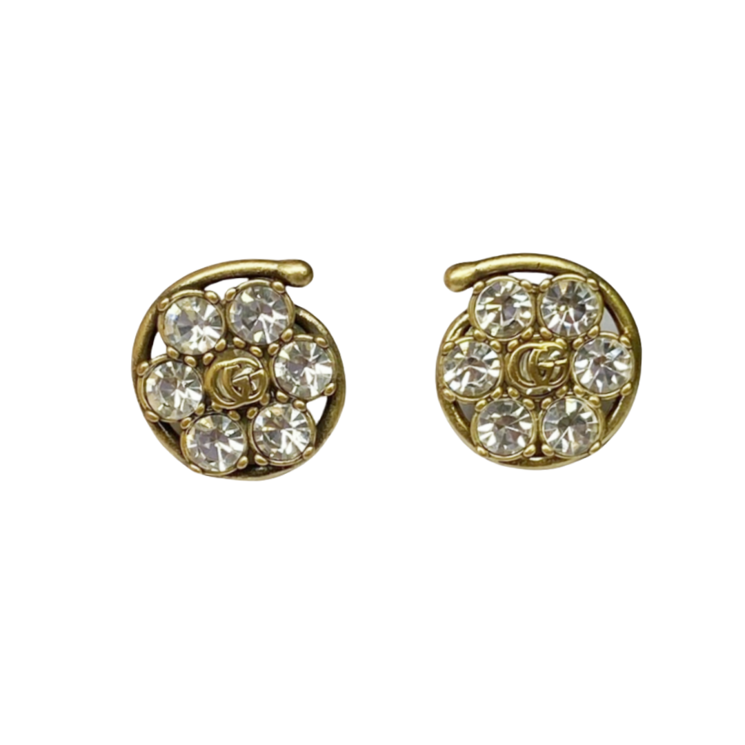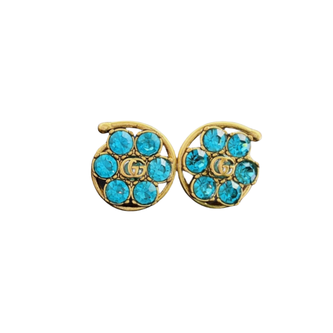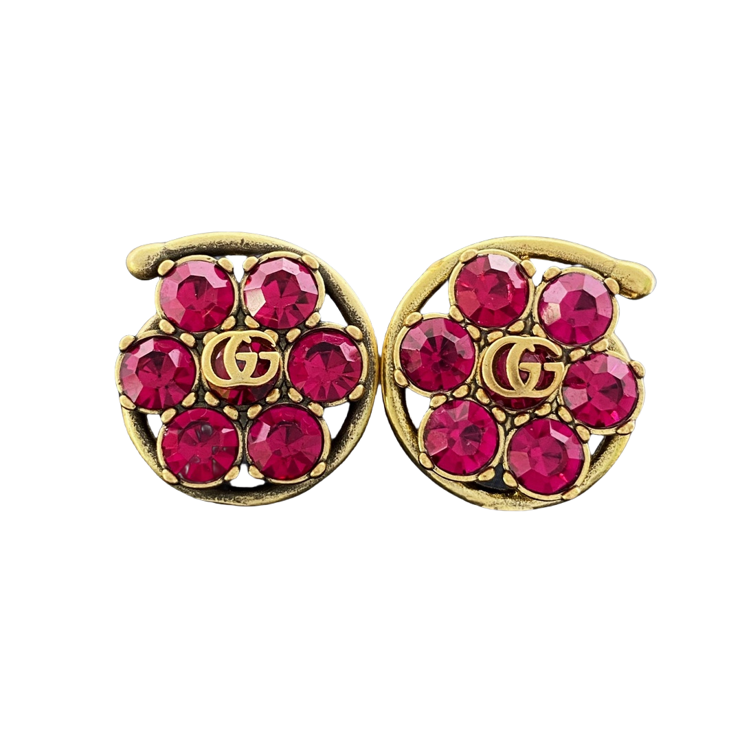GGE066 GG Interlocking g flower drop earrings in metal and colorful crystal