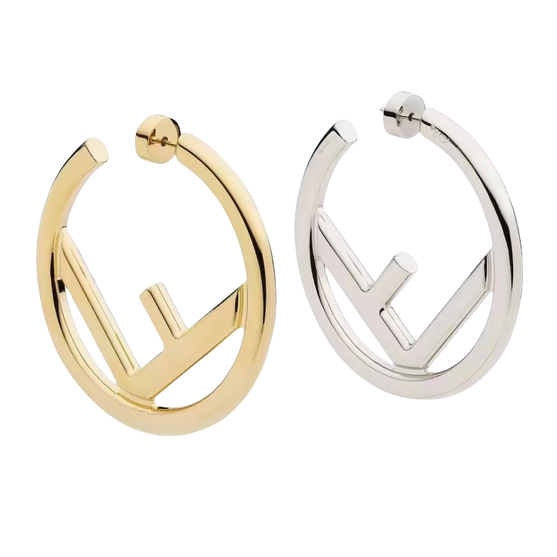 FDE041 Fendi Logo Cut-Out Hoop Earrings