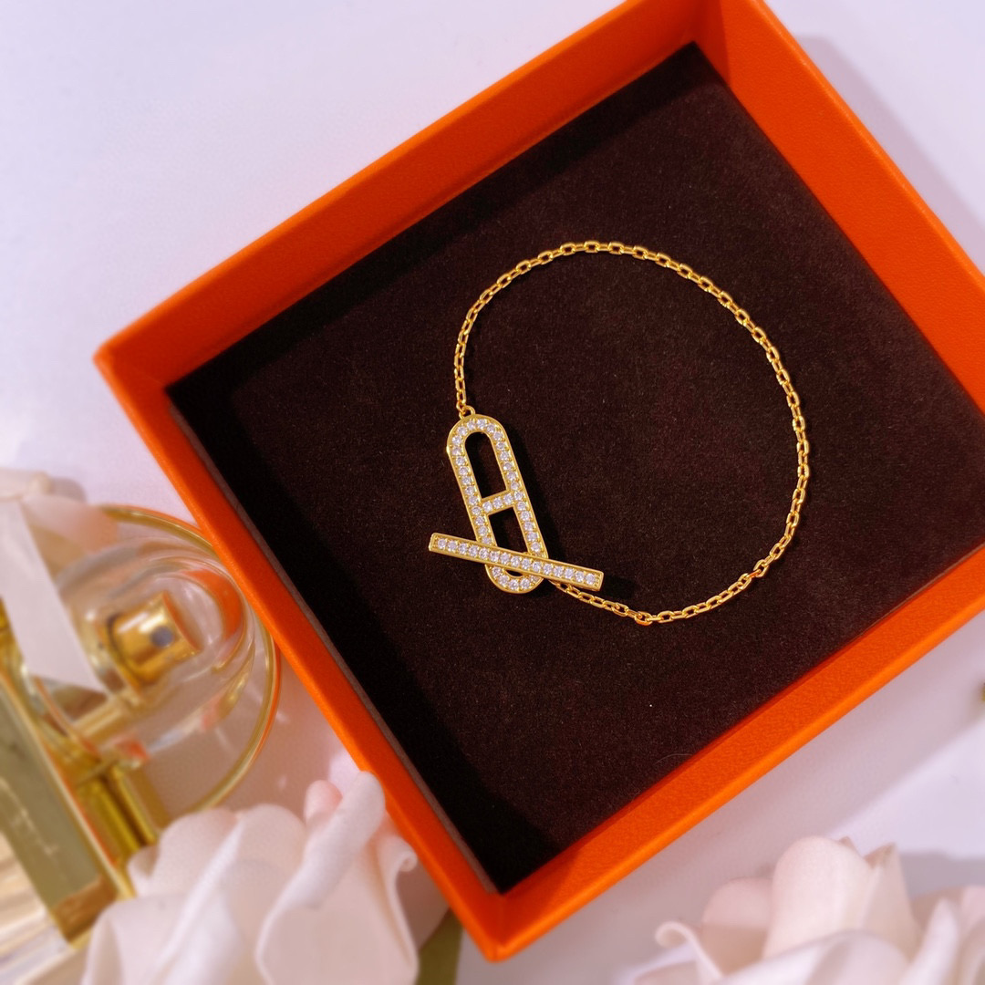 HMS020 8mm Milk tea Enamel Gold clic clac H bracelet 17