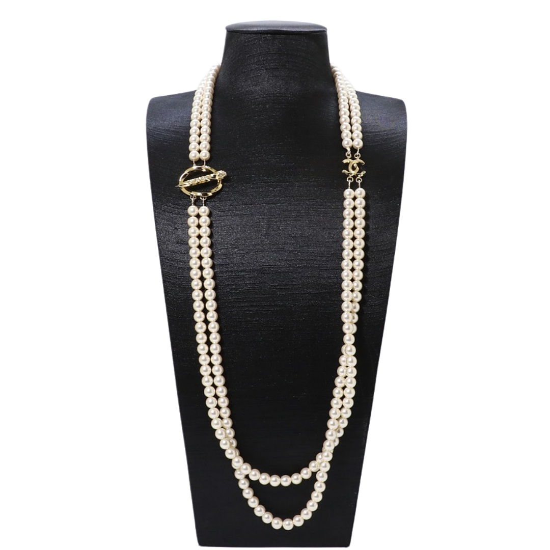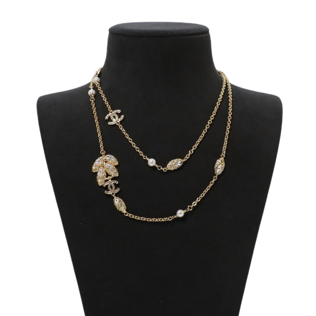 CCL117 Chanel Vintage Wheat flower cc logo long chain sweater necklace