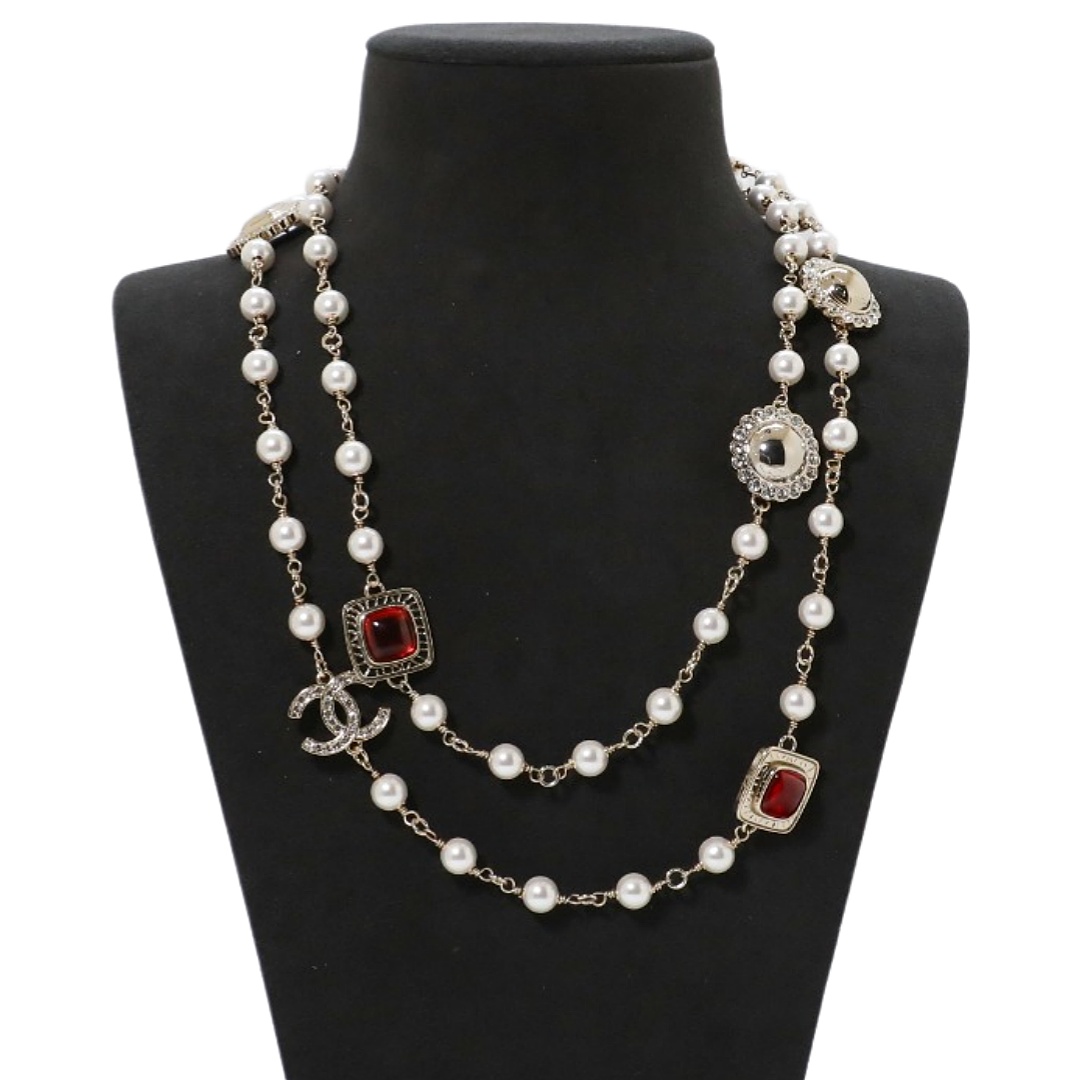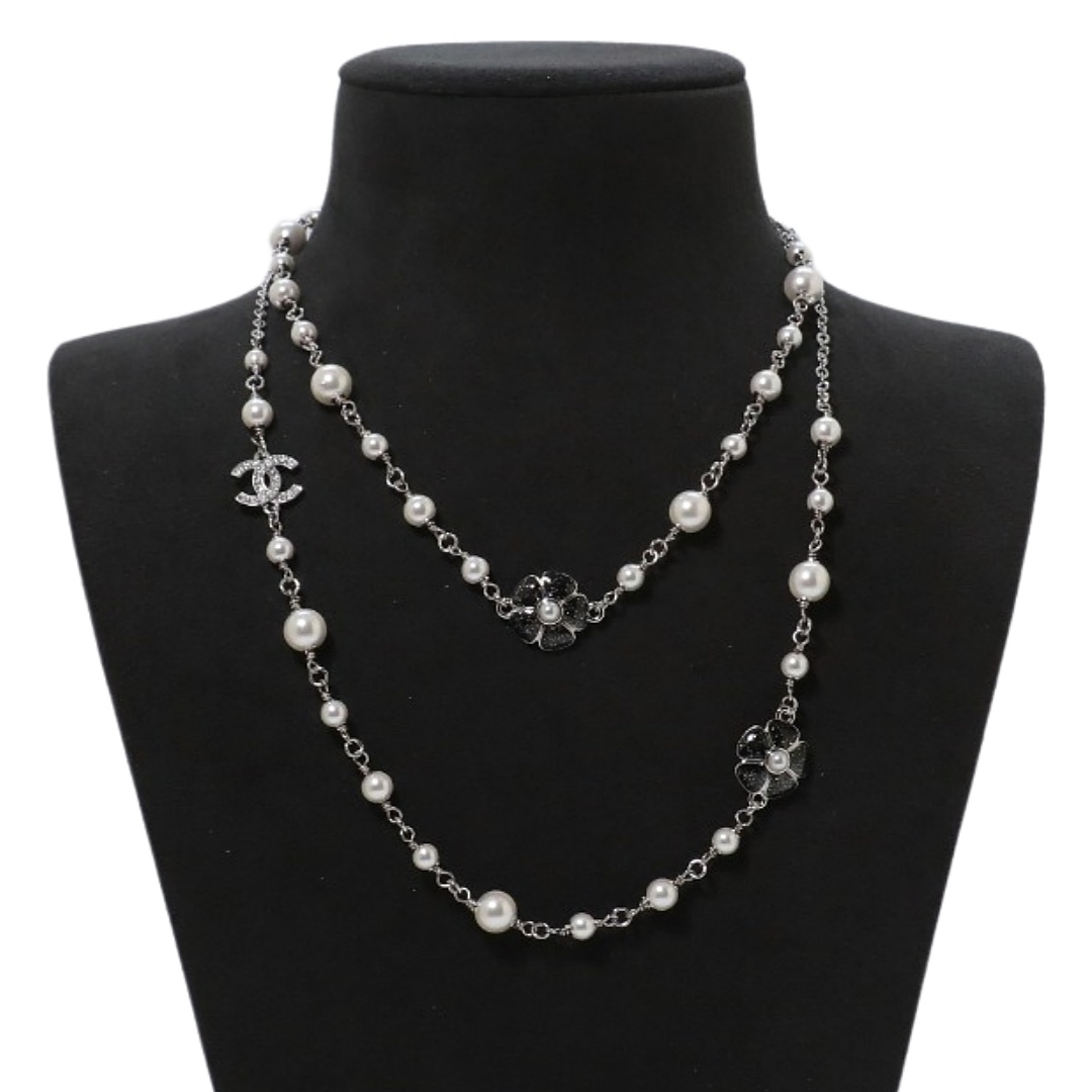 CCL118 Chanel enamel camellia cc logo long chain sweater necklace
