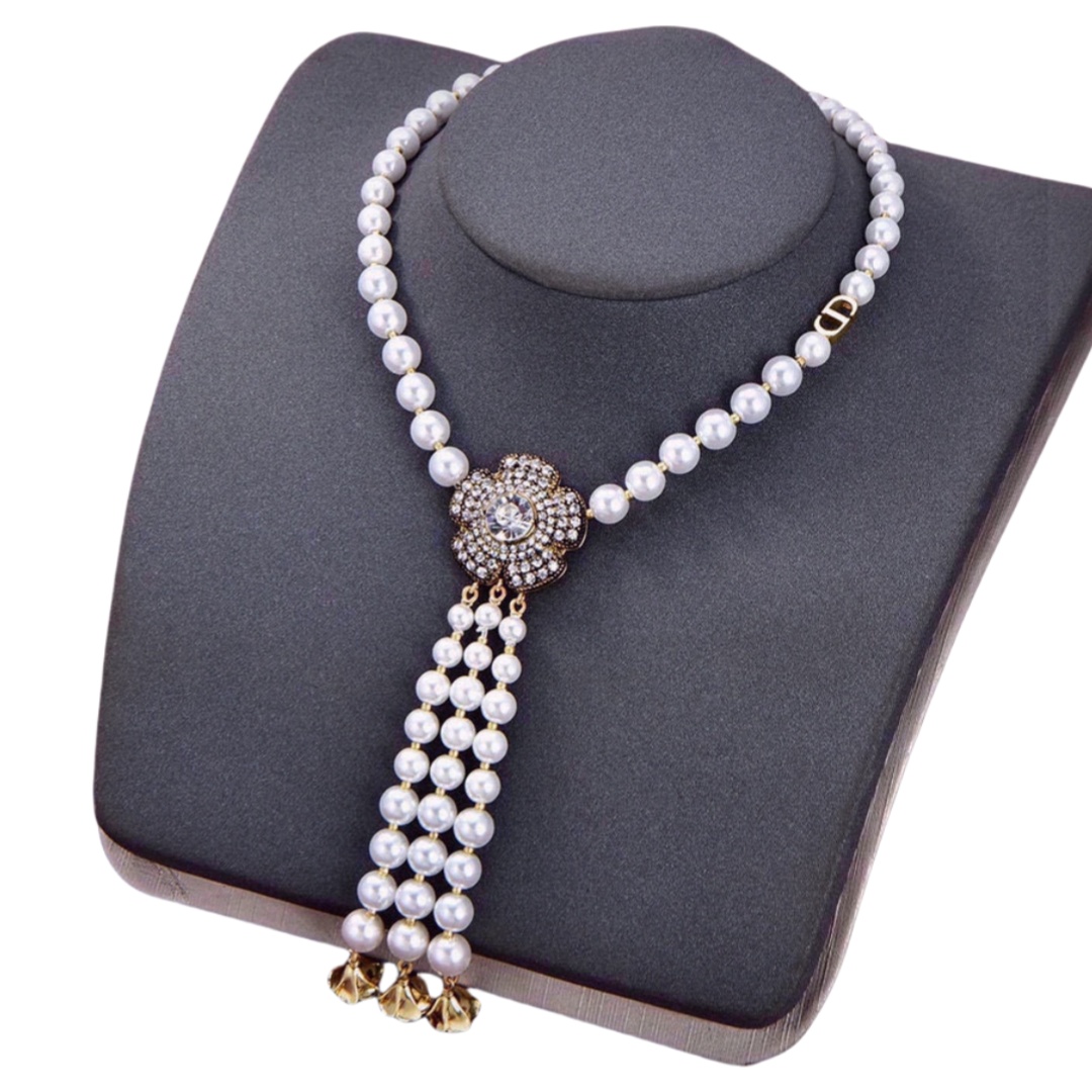 CCL001 Chanel Chinese style color enamel flower pearl long chain sweater necklace for women