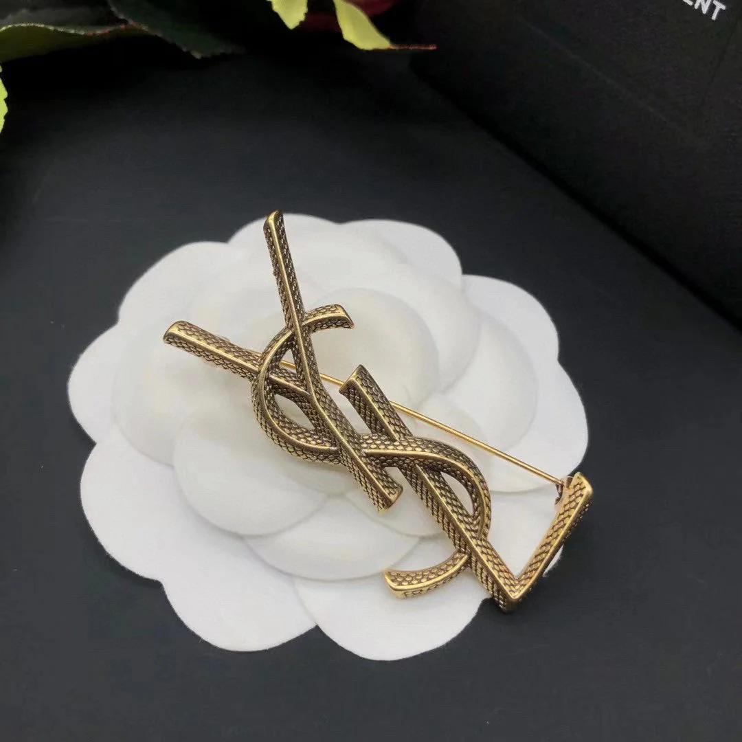 BCB060 Pearl and metal ear of wheat pattern edge CC logo brooch pines