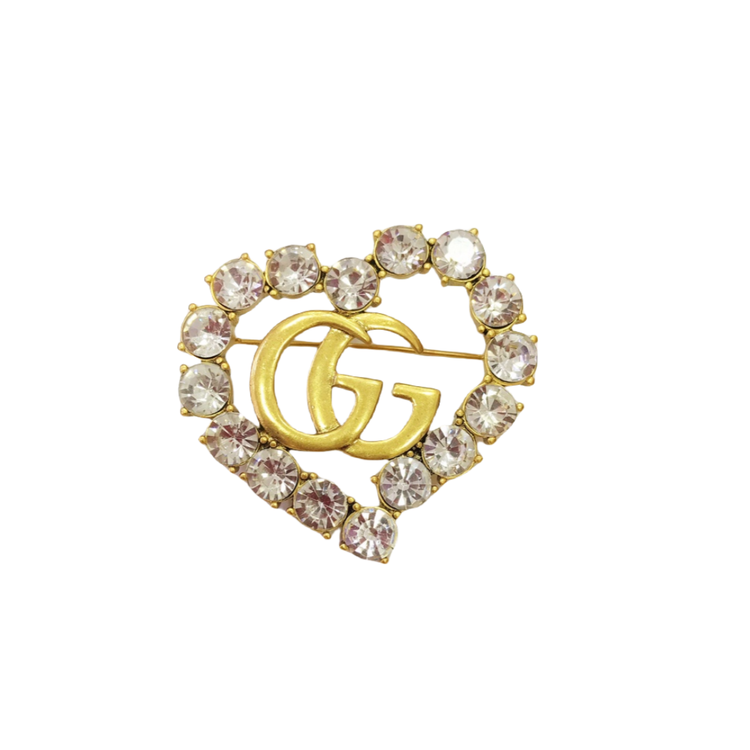 CDB014 Heart shape with crystal Jadior letter brooch pin