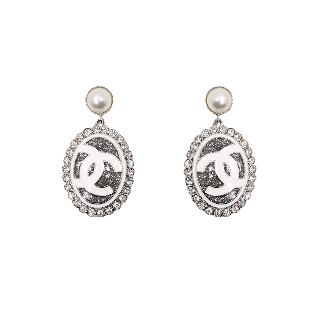 CCE133 CC Logo stud earring in metal with pearl and black stone