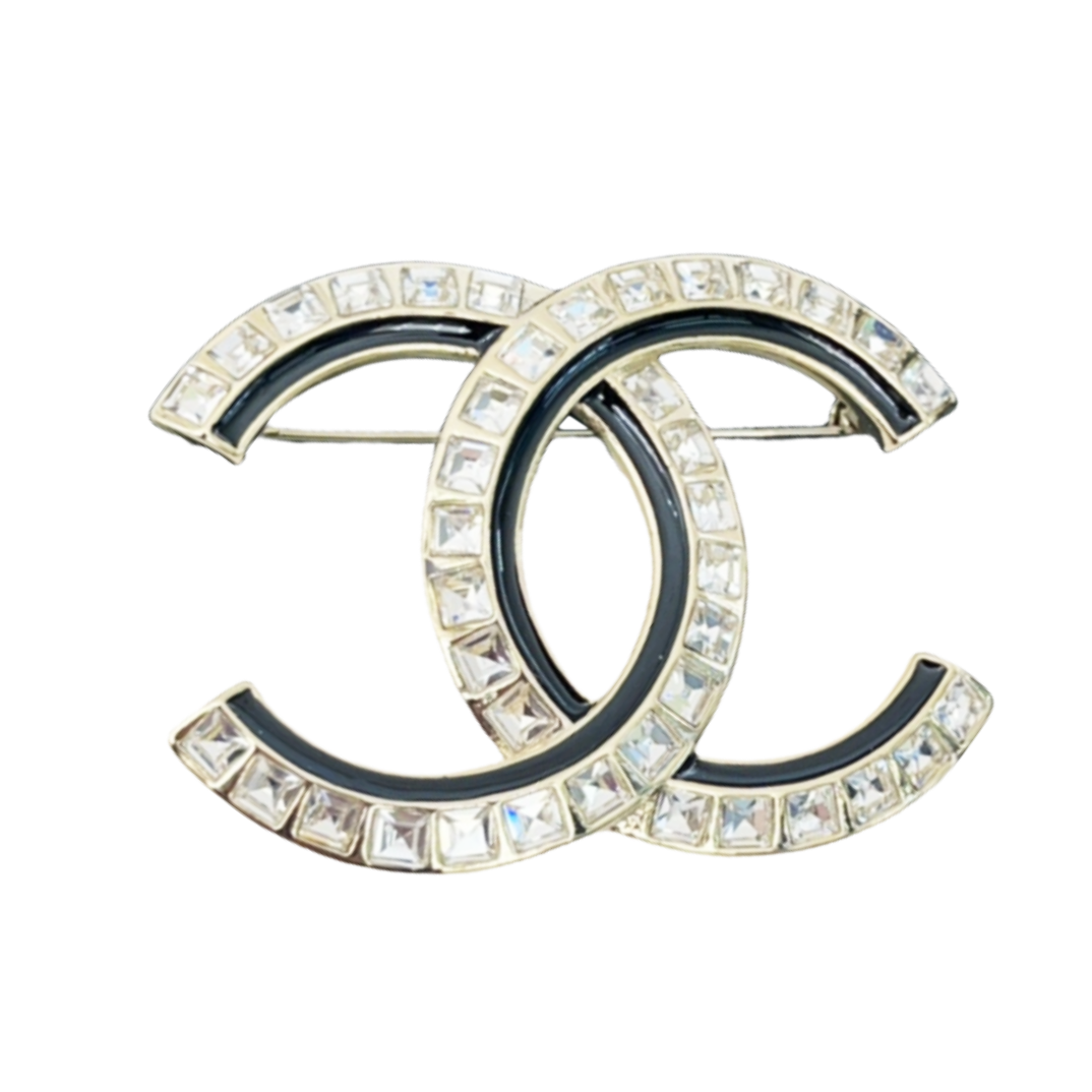 BCB110 Crystal hollowed-out CC logo brooch pin