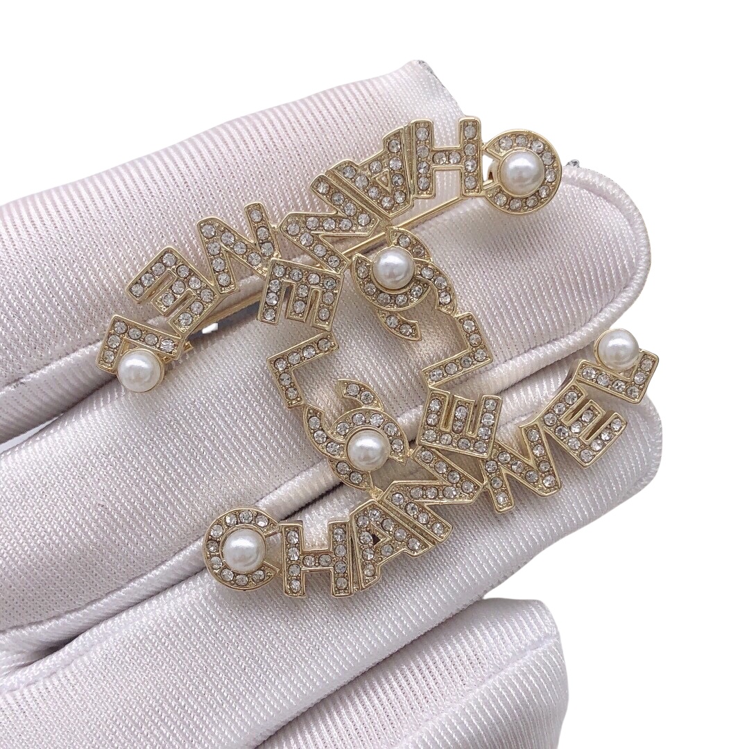 BCB111 Crystal and pearl letters CC logo brooch Pin
