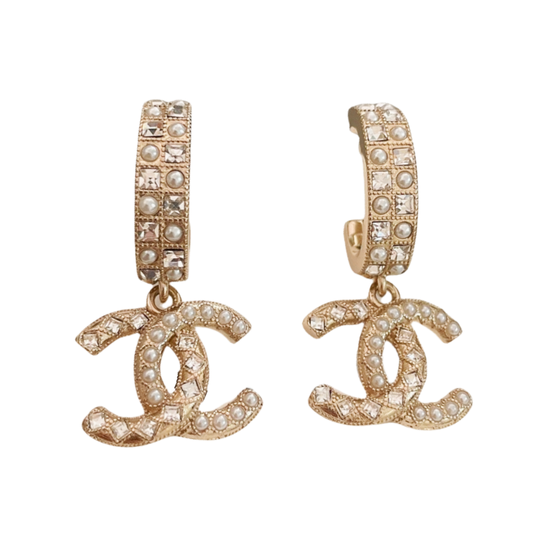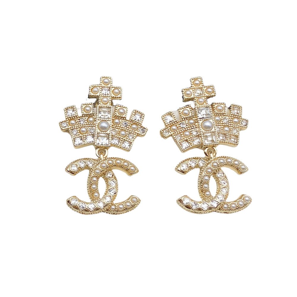CCE180 Chanel crystal pearl crown drop earrings and necklace