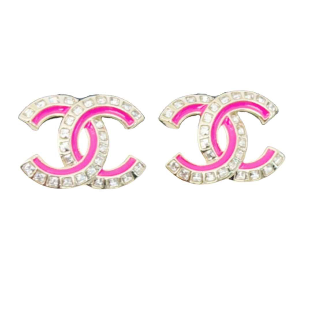 CCE181 Metal crystal Pink & Black enamel CC logo stud earring