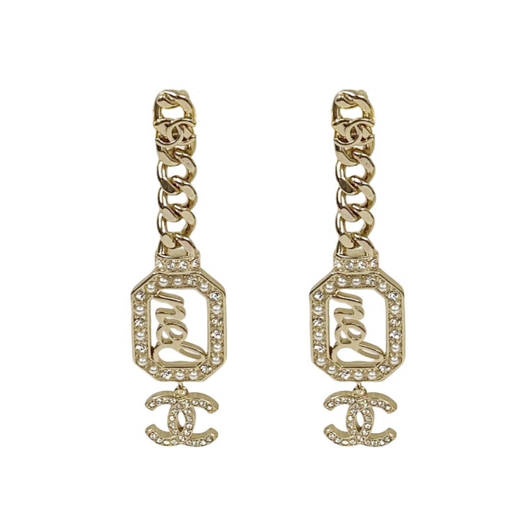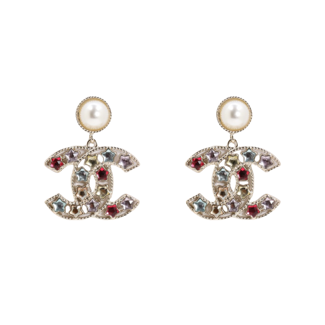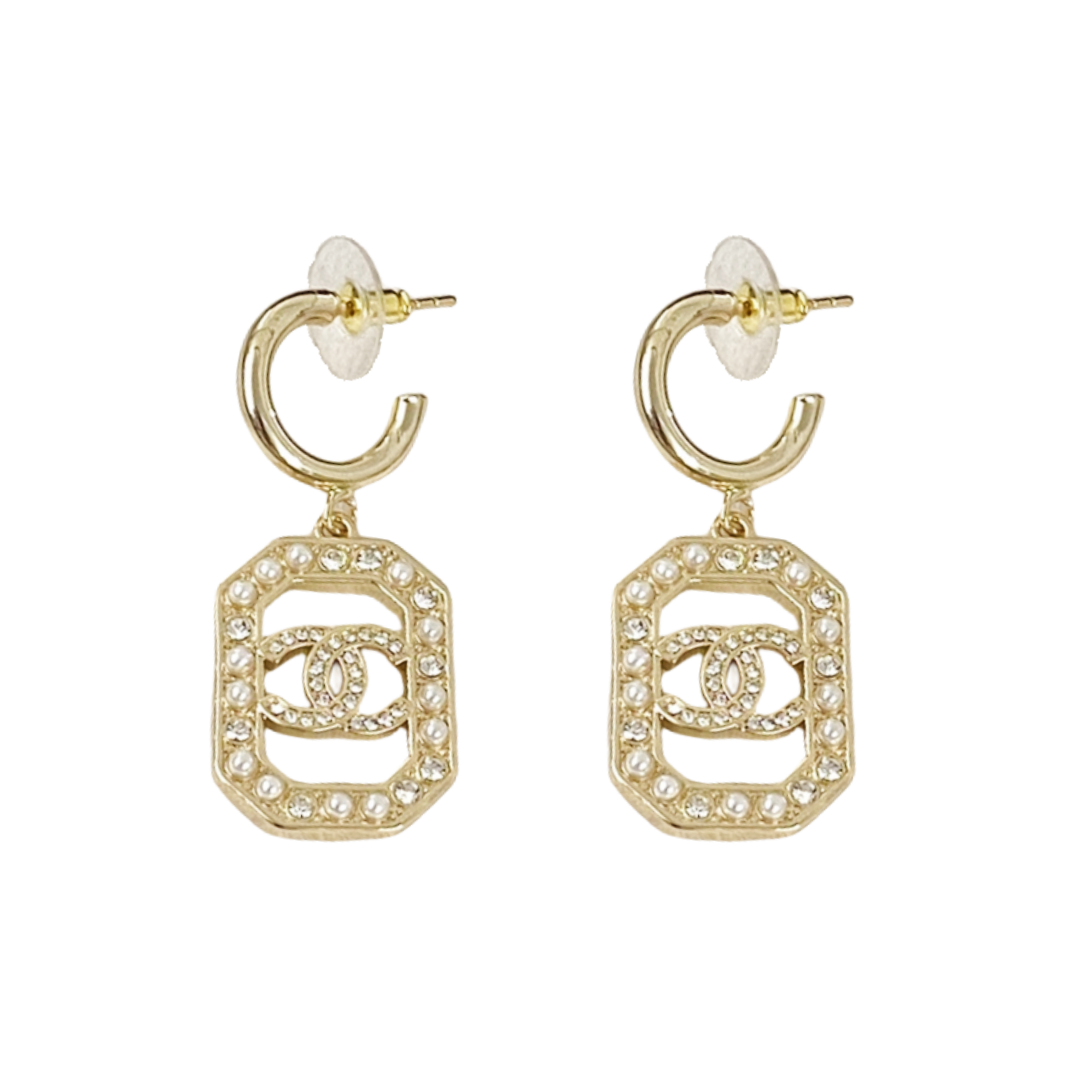 CCE219 100th anniversary crystal and pearl cc logo stud earrings
