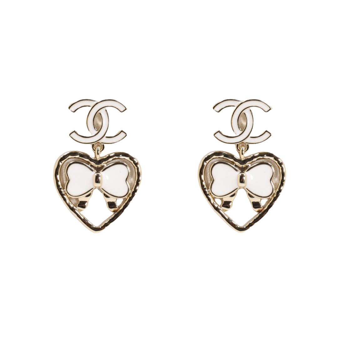CCE209 Hollow Heart bow enamel cc drop earrings for women